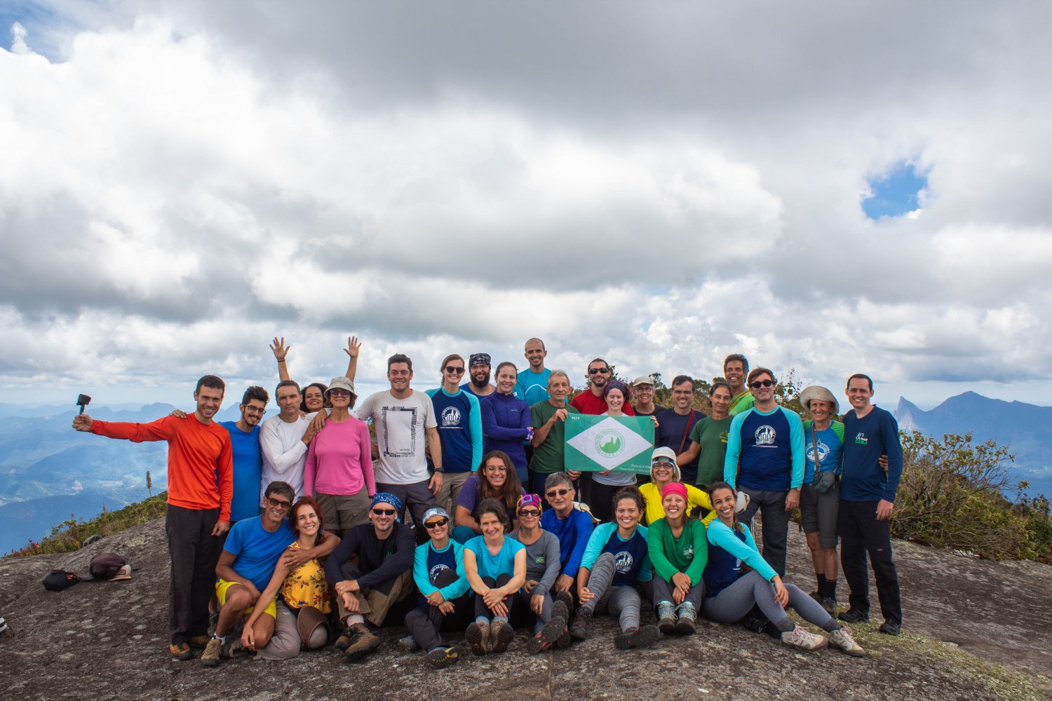Nas caminhadas, fizemos a Pedra do Cabrito e a Pedra do Fio, clássicos locais para a prática de BASE jumping, e o grande destaque: a caminhada do Forno Grande. Nesse dia todos os inscritos foram para a atividade, pois fizemos uma ação conjunta com o Parque Estadual do Forno Grande para ajuda na manutenção da trilha, que estava fechada há alguns anos. Para essa atividade, juntaram-se a nós outros montanhistas, inclusive alguns da Associação Capixaba de Escalada. A subida ao Forno Grande foi realmente especial, com os trinta e três montanhistas de diferentes clubes e gerações comemorando o cume (2039 metros de altitude). O desafio foi maior na descida, pois a chuva caiu enquanto ainda estávamos nos costões rochosos, nos obrigando a utilizar cordas e ter bastante cautela e paciência para trazer todos em segurança. Voltamos com setenta e quatro vergalhões de ferro, que apesar de já estarem removidos da pedra, precisavam ser carregados montanha a baixo.