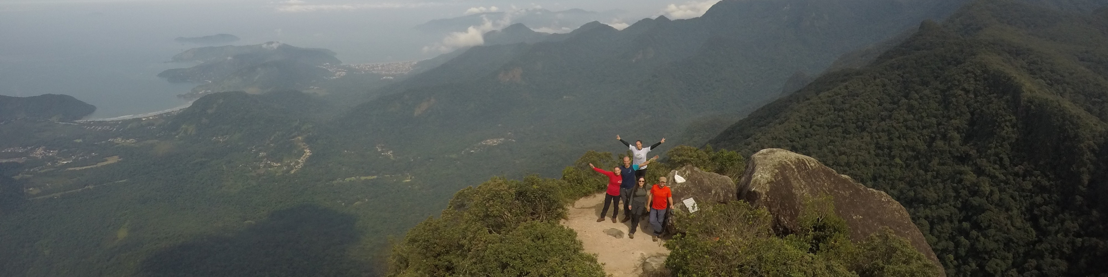 Fizemos o cume após quatro horas de caminhada, mantendo um ritmo bastante razoável e com poucas paradas. Lá pudemos almoçar com calma, curtir o visual espetacular e registrar nossa subida e os 100 anos do CEB no livro de cume. Observando a paisagem no sentido leste, foi possível contemplar toda a enseada de Ubatuba e boa parte da Costa Verde. Para oeste, observamos a transição para o relevo de mares de morros, sentido Vale do Paraíba paulista.