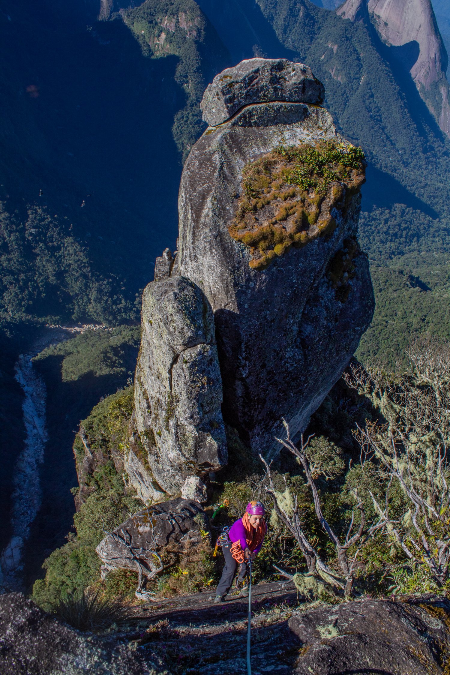 Descemos de rapel para o colo entre as Coroas Central e Principal e Luiz guiou a Coroa Central jogando duas cordas fixas para baixo. Diogo e Fernanda foram os primeiros a subir, sendo a Fernanda a primeira mulher a pisar no cume da Coroa Central. Depois subiu o Renan e por último, depois de pensar bastante, o Rafael. Nos tornamos ali os primeiros cebenses a realizar este feito.