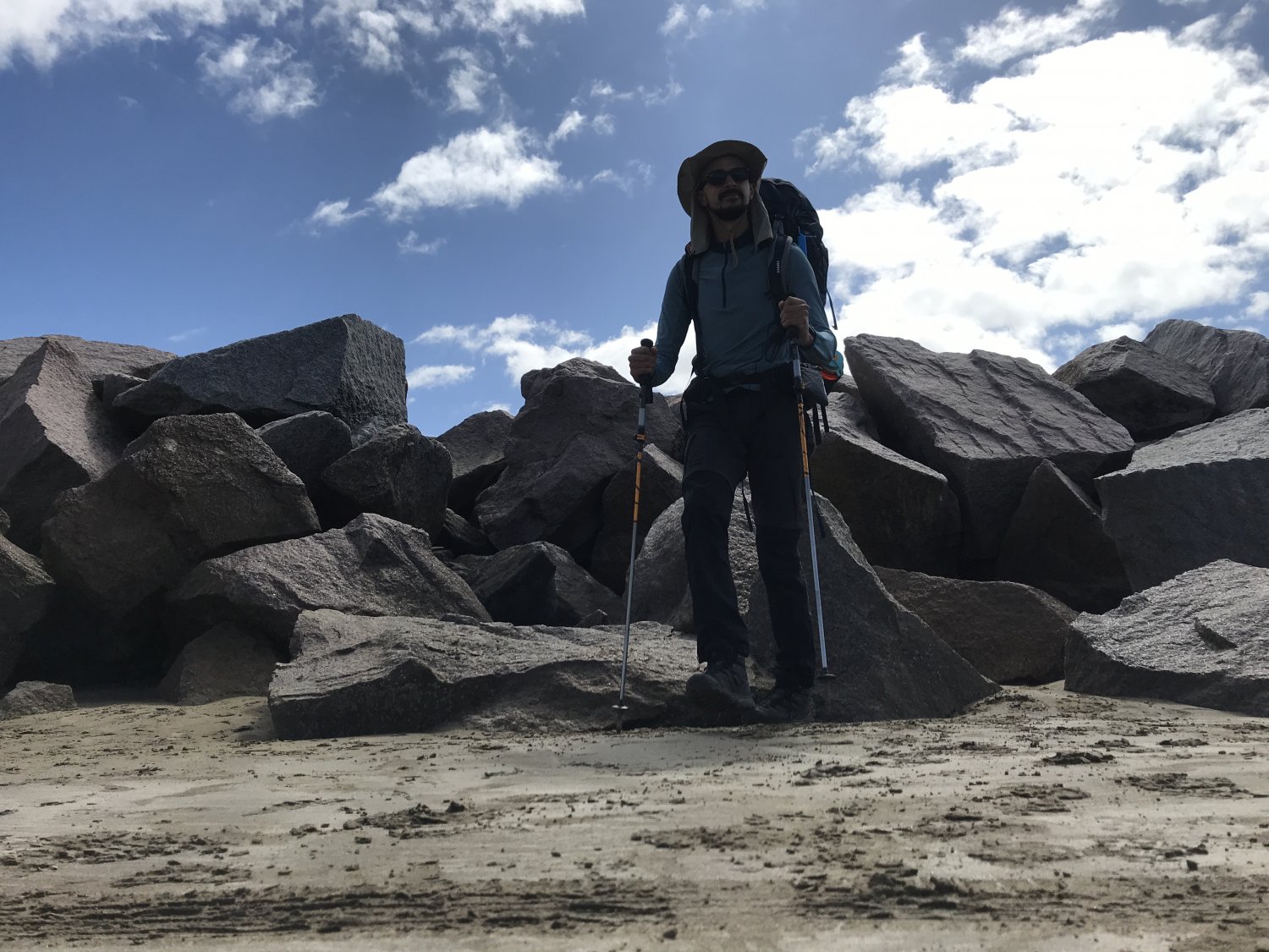 Eu já imaginava que o segundo dia seria um pouco mais arrastado, considerando a resposta do corpo pelo primeiro dia caminhando distante e com um peso razoável. Minha mochila estava com 21kg, sem água, no início da empreitada. Isso explica a diferença de quase 12km a menos em relação ao dia anterior. Mas foi uma caminhada feliz, novamente com tempo bom e muita motivação por estar lá percorrendo a maior faixa de areia do mundo (não entrarei na polêmica da maior praia por aqui...hehe).