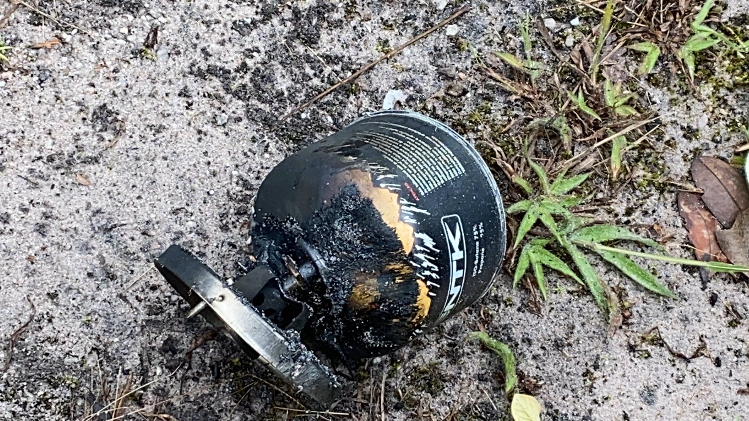 O fogareiro explodiu pelo fundo, pela tampa de baixo do bujão, voou longe essa parte.