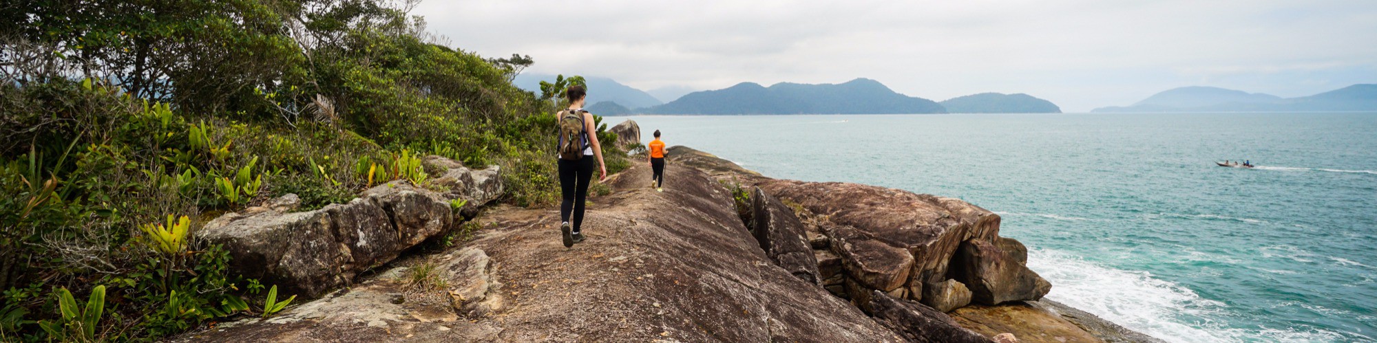 Hiking de 9km da Trilha das Sete Praias em Ubatuba, no Litoral Norte de São Paulo. Partindo da Praia da Lagoinha até a Praia da Fortaleza.