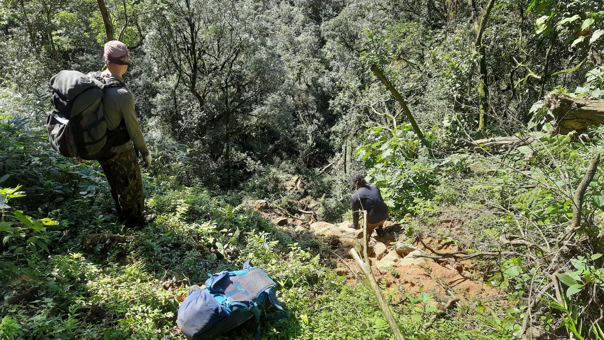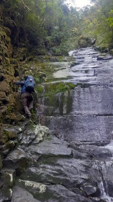 Trajeto realizado por trecho de mata completamente fechada, desfiladeiro, vales, rios e cachoeiras (absurdamente perigoso).