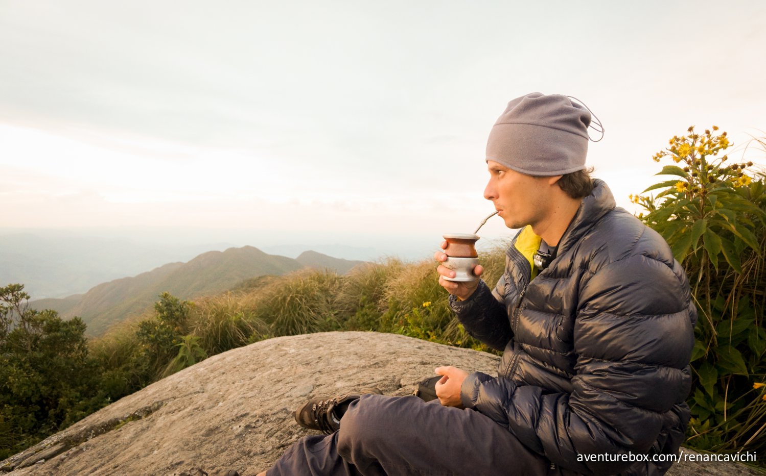 Fizemos um registro fotográfico, tomamos um café e preparamos um chimarrão para curtir a vista da Serra Fina do lado oposto.
