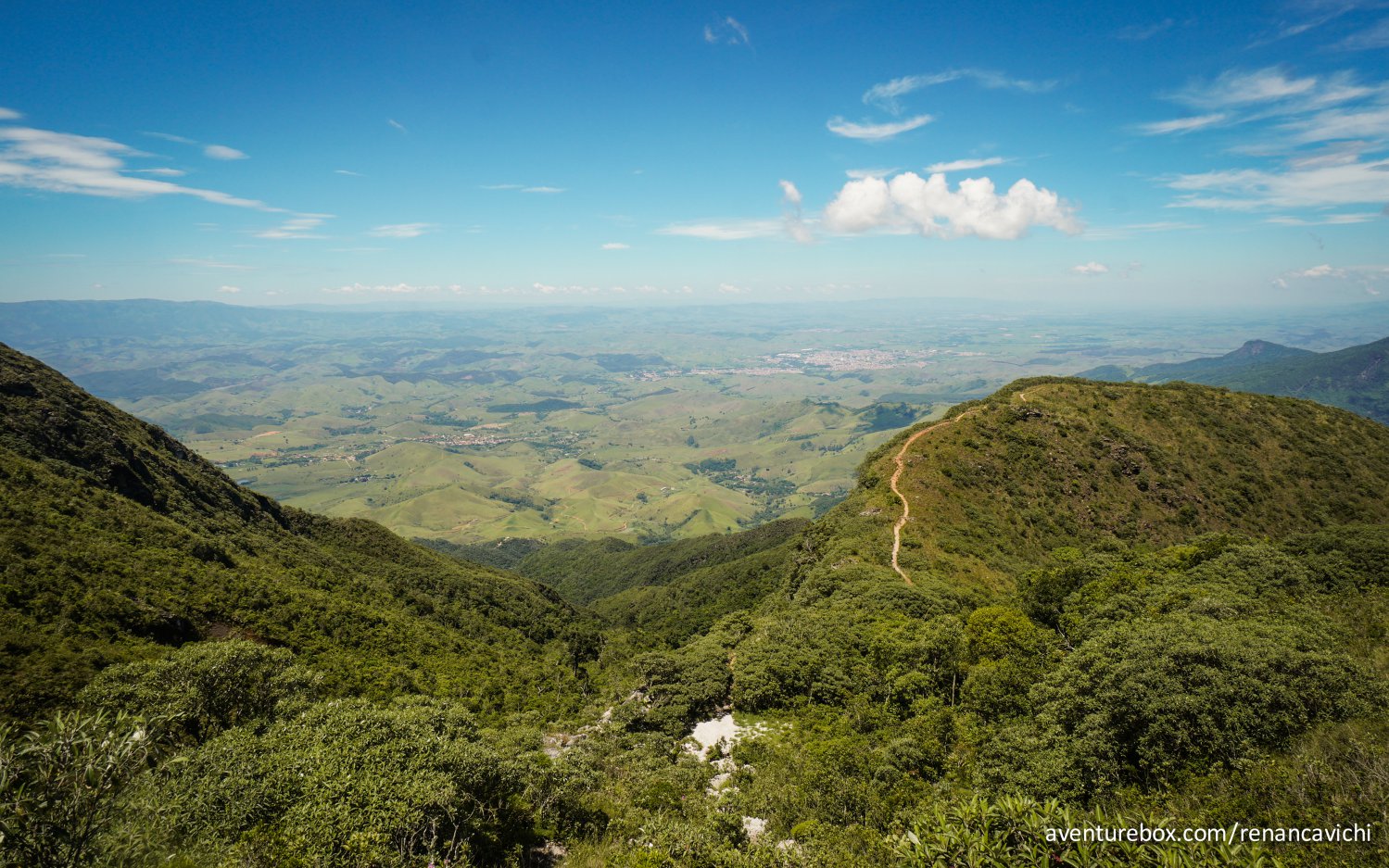 Passamos pela Toca do Lobo, cruzamos o rio e seguimos montanha acima pela trilha íngrime. Depois de alguns minutos chegamos aos primeiros mirantes com vista para o Vale do Paraíba, coisa linda que já inspirou algumas fotos. Um pouco mais à esquerda já conseguimos avistar ao longe o Cume do Capim Amarelo. Subidão danado!
