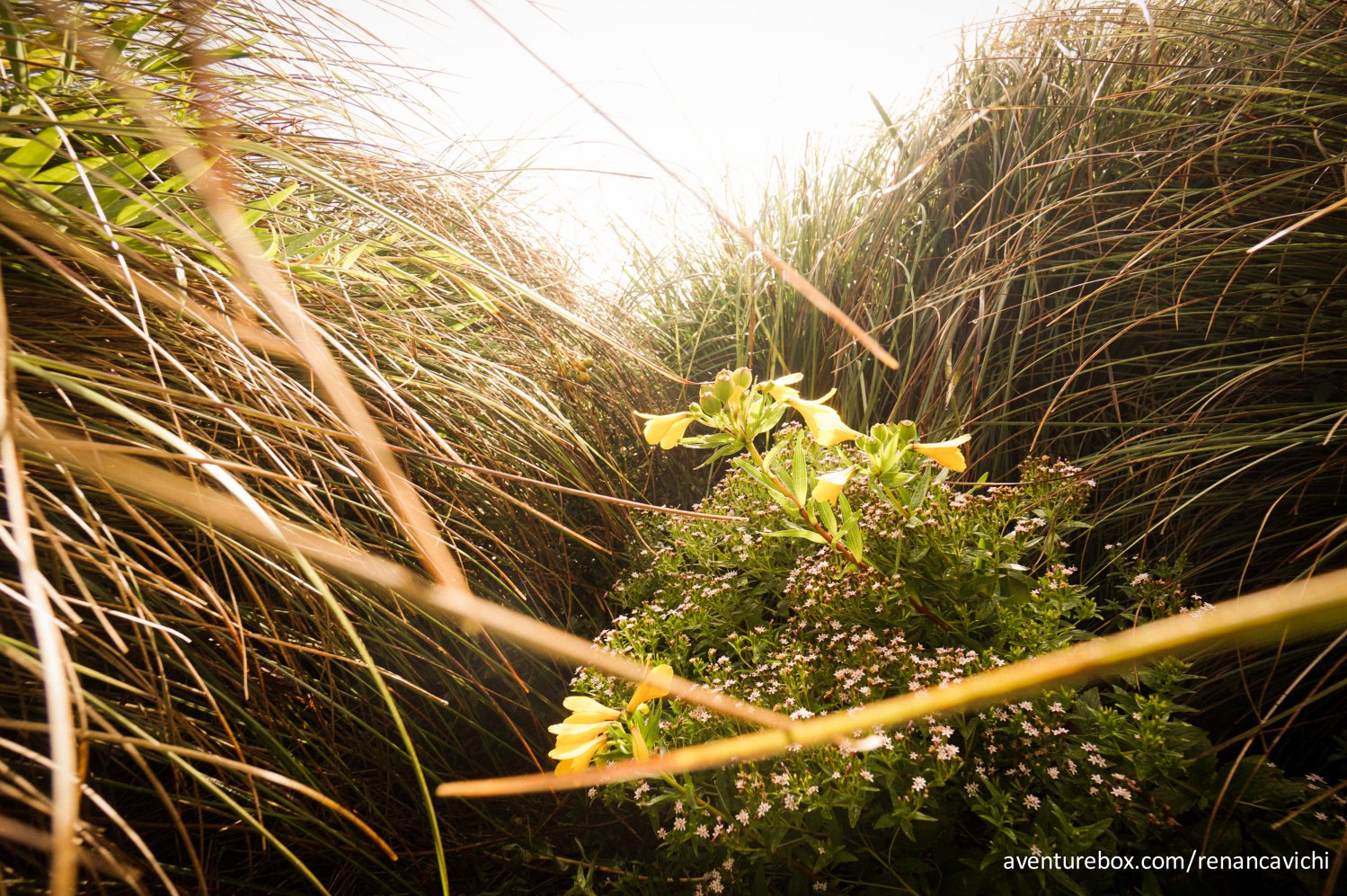 Acordamos com o sol na barraca e percebemos algo que pra mim foi muito diferente da outra vez que estive no Capim Amarelo. O cume estava muito florido e cheio de cores! Lindo de ver!