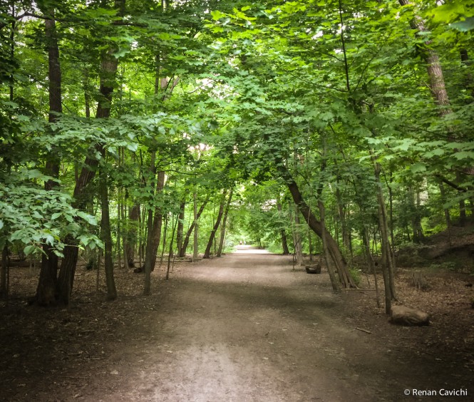 Pesquisando algumas trilhas perto do hostel onde fiquei instalado eu encontrei a Beltline Trail. A trilha com cerca de 9 km no total é bem frequentada por ciclistas e caminhantes. Beltline Trail consiste em três seções, a York Beltline Trail a oeste de Allen Road, o Kay Gardner Beltline Park de Allen a Mount Pleasant Road, e a Ravine Beltline Trail ao sul do Mount Pleasant Cemetery através do Moore Park Ravine.