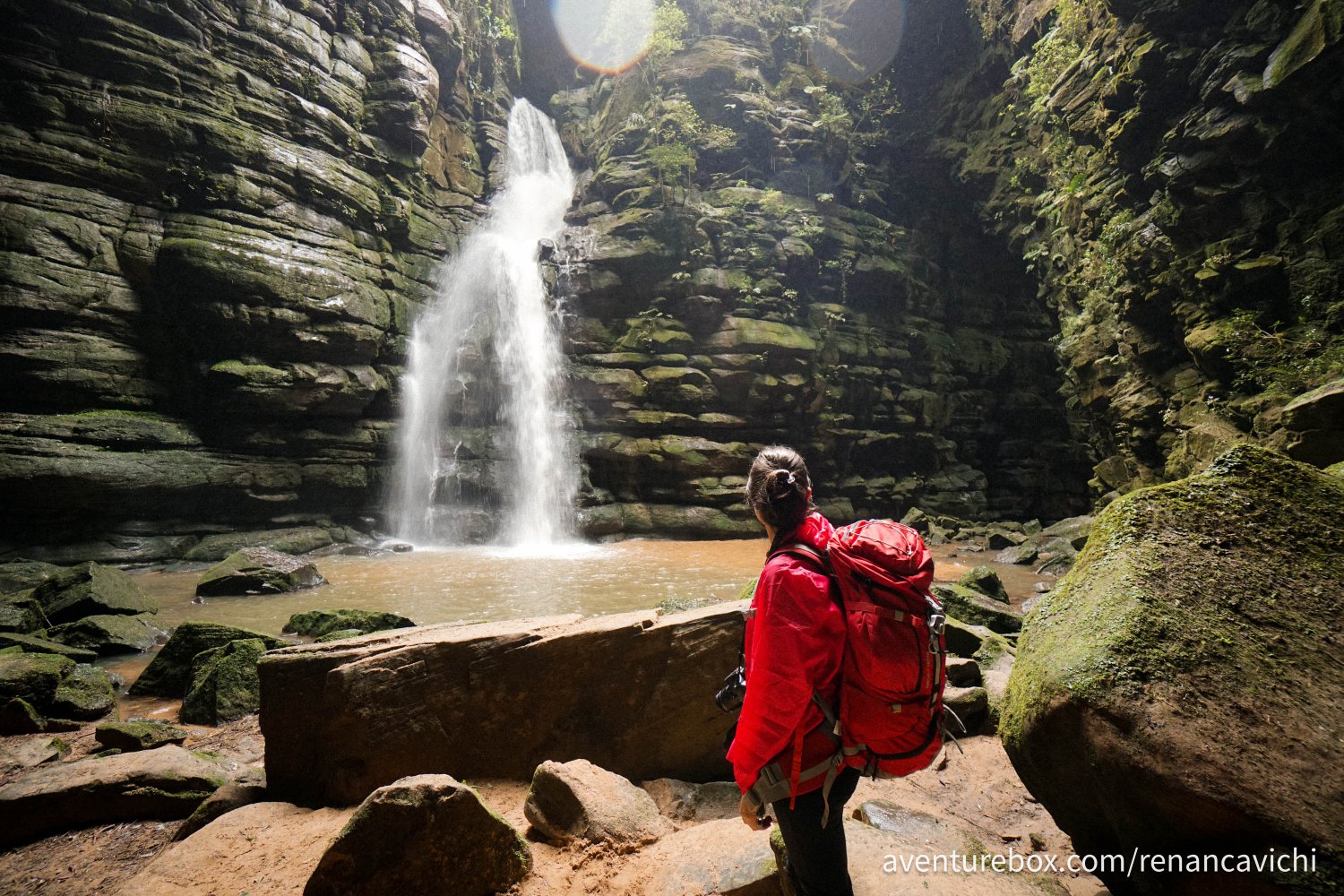 Esse lugar, é um daqueles de cair o queixo. São 360 graus de paredões de pedra, com uma abertura circular para o céu, uma cachoeira com cerca de 40m, e um córrego de águas cristalinas e geladas. O cenário perfeito para se conectar com a natureza e sentir a paz que ela traz.