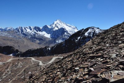 Montanha com cerca de 5.400m de altitude. Um dos lugares mais altos que já estive. Acesso fácil, 27km de carro saindo do centro de La Paz.