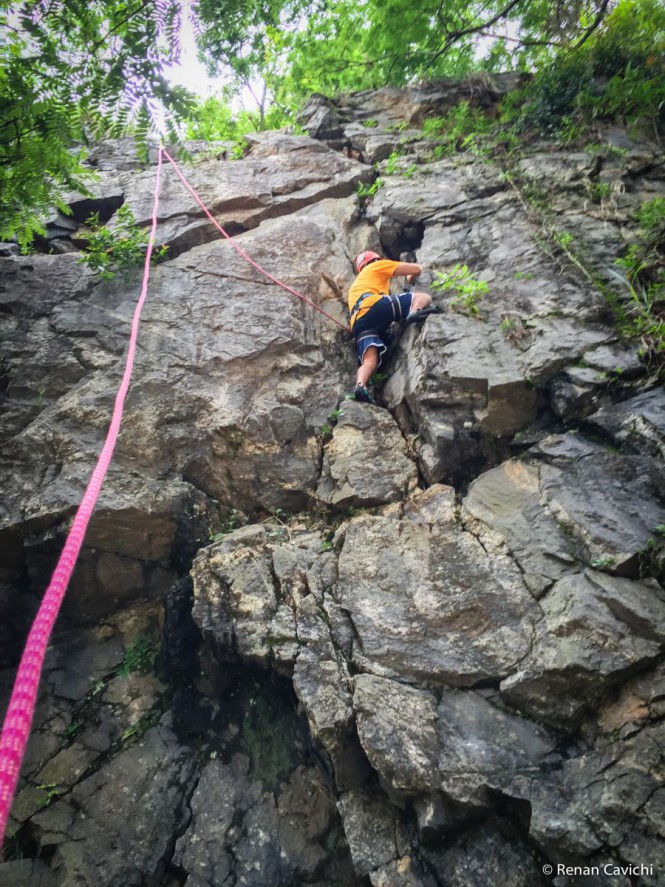 Toda a experiência do curso foi muito legal, consegui realmente aprender as técnicas e conhecer mais sobre os desafios da escalada em rocha. Como em qualquer atividade de risco, ainda preciso treinar e estudar mais as técnicas para fixar bem.