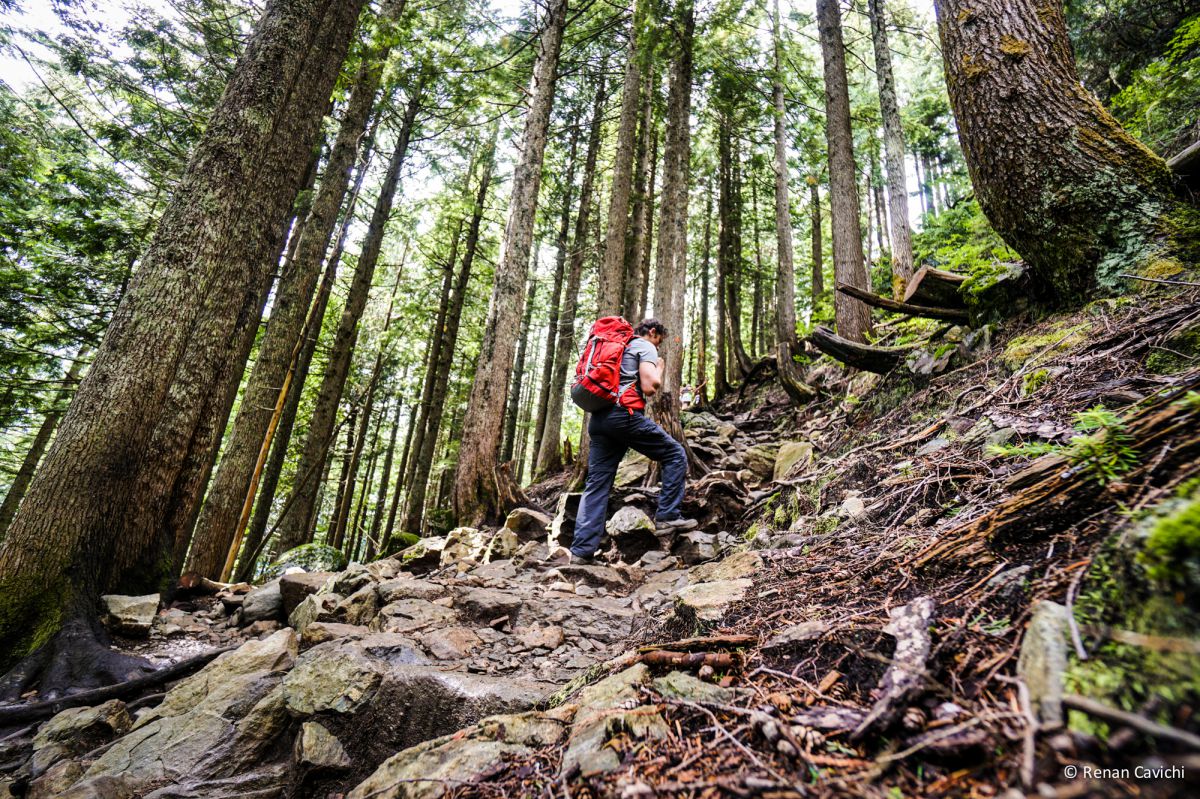 Parte 1: Grouse Mountain, British Columbia. O começo de uma jornada de hikes pelas montanhas e lagos canadenses. Trilha íngrime de 2 km.