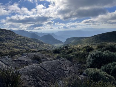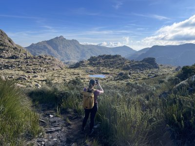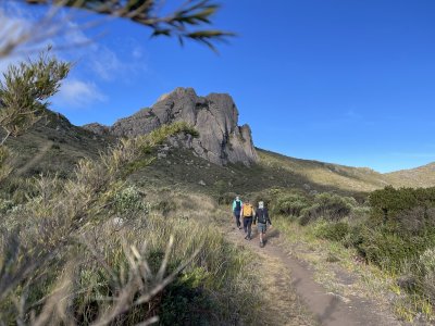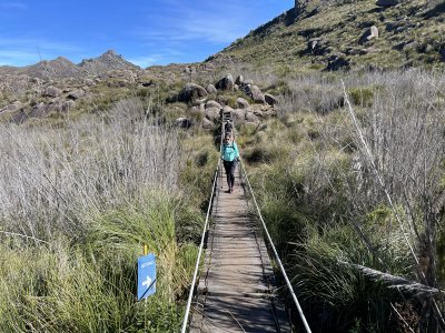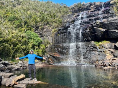 Trilha no Parque Nacional do Itatiaia, começando no Abrigo Rebouças, passando próximo a Pedra do Altar e pela Cachoeira do Aiuruoca.