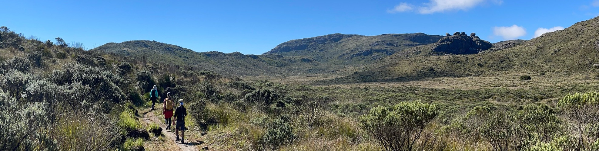 Trilha no Parque Nacional do Itatiaia, começando no Abrigo Rebouças, passando próximo a Pedra do Altar e pela Cachoeira do Aiuruoca.