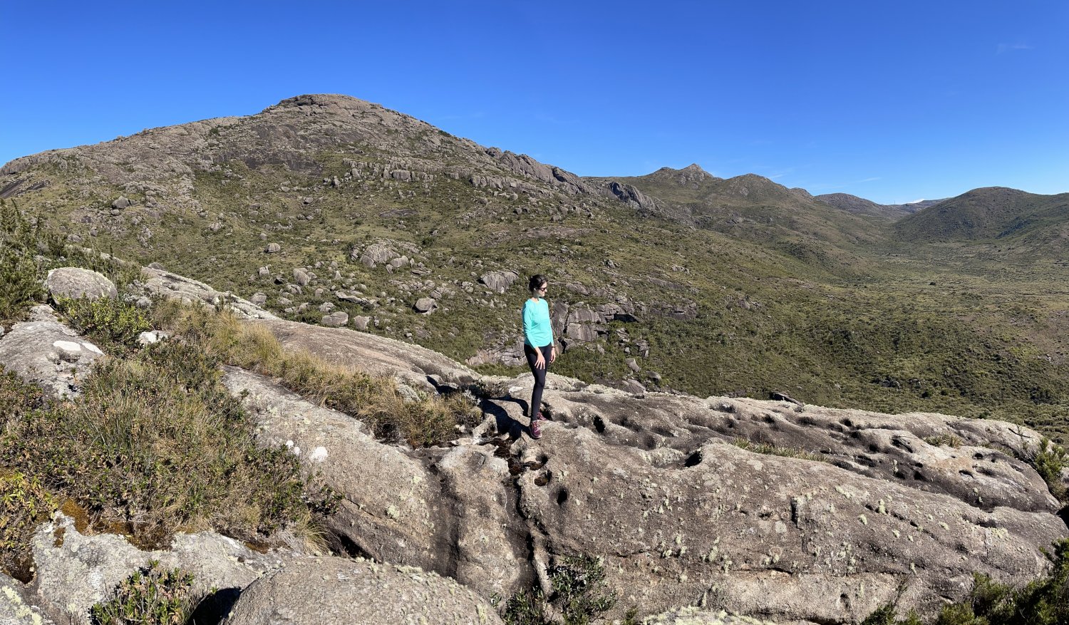 Saindo da cachoeira, subimos de volta para a trilha e seguimos sentido Ovos de Galinha, contornando o grandioso vale entre várias montanhas. O nome Ovos de Galinha é bastante explicativo: no topo de uma pequena colina, diversas rochas gigantes e arredondadas parecem desafiar o equilíbrio e a gravidade. Vendo de longe, lembra muito uma ninhada de ovos mesmo.