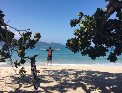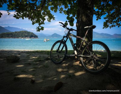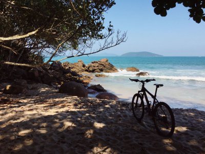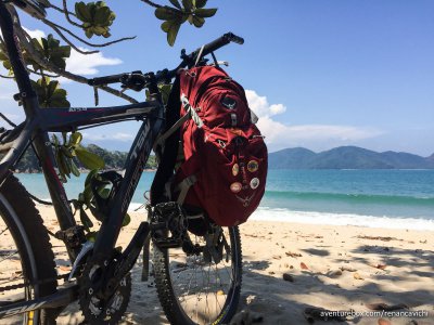 Mountain Bike da Praia da Lagoinha até a Praia da Caçandoca em Ubatuba-SP para avaliação da Mochila Manta 28 da Osprey.