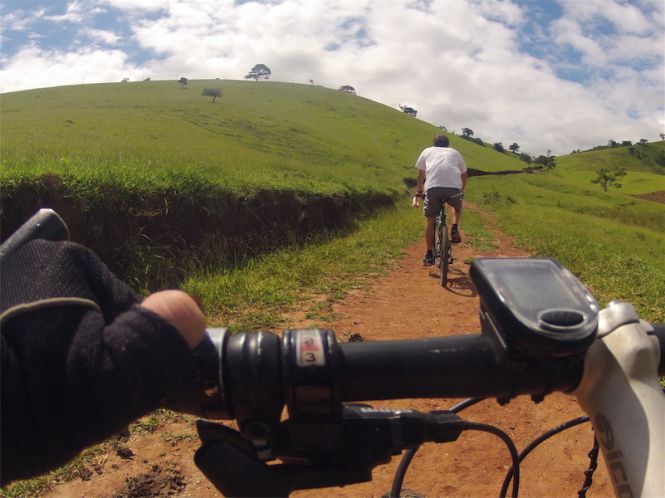 A tarde encaramos uma trilha mais longa, no entanto, com todo percurso em estradas de terra e asfalto. Ainda sim com umas belas subidas de tirar o fôlego.