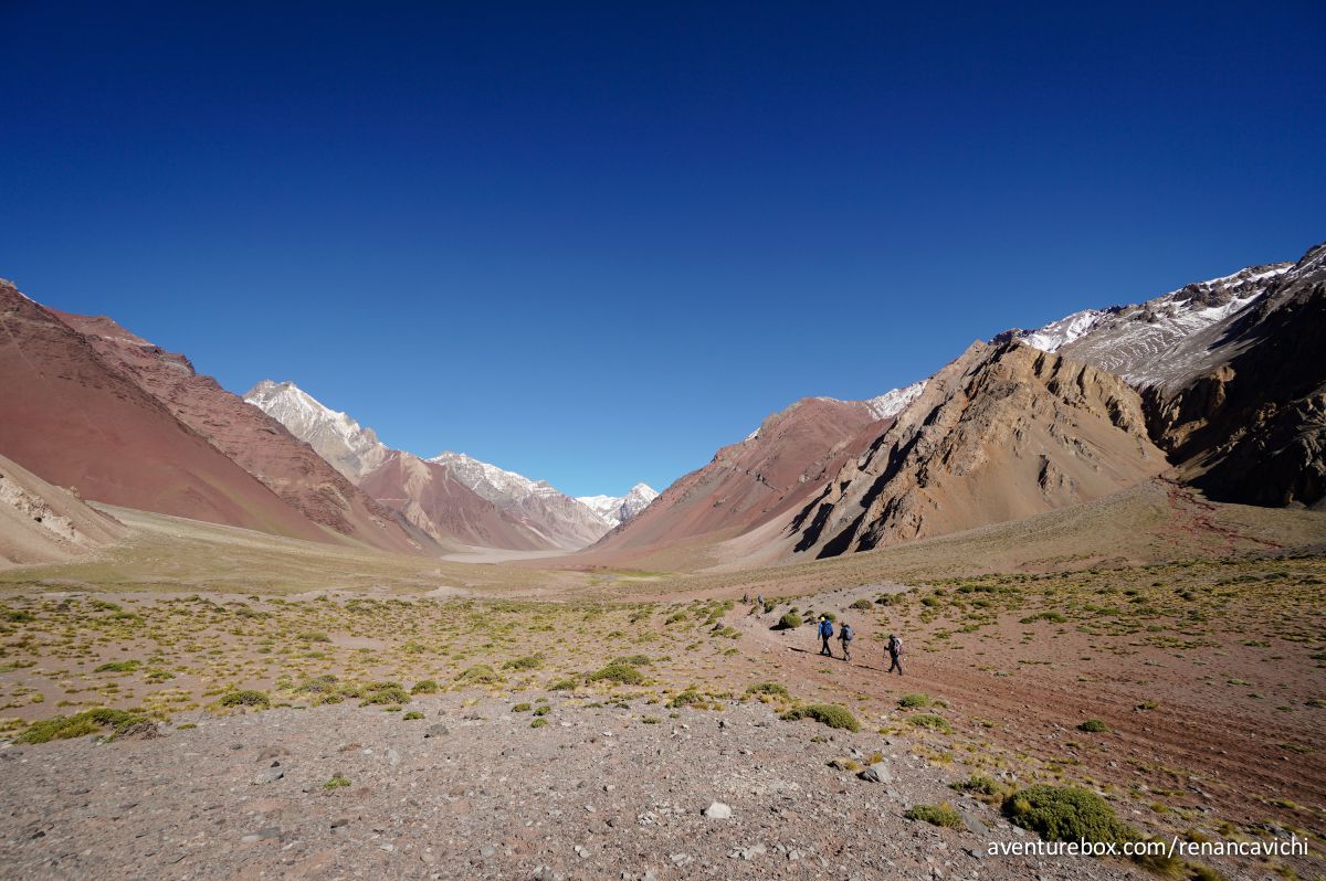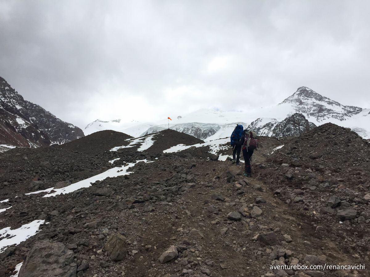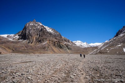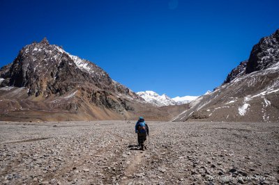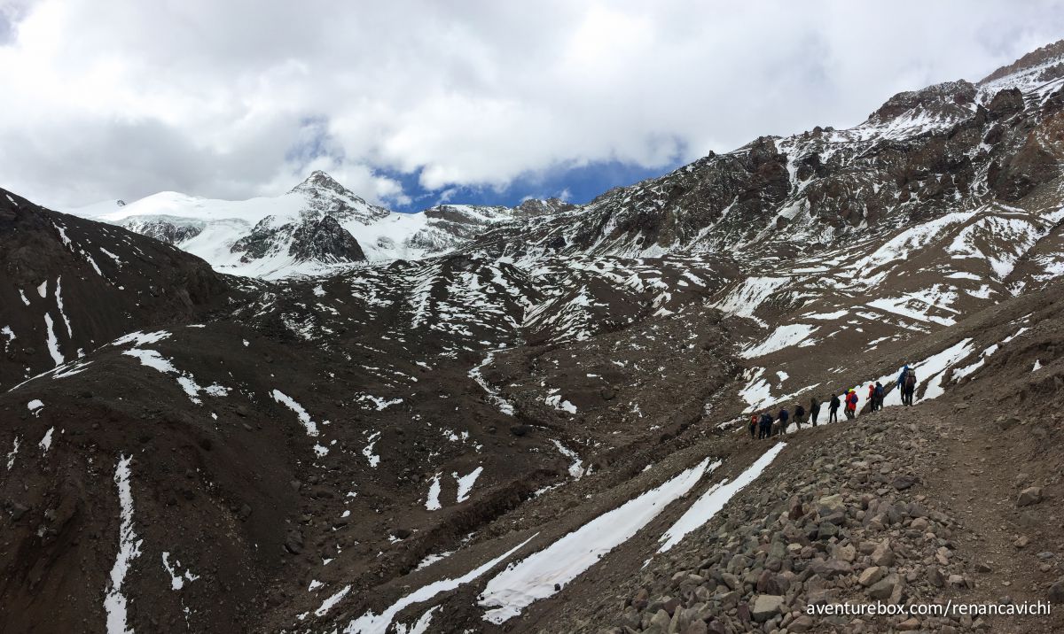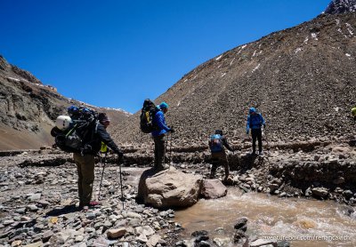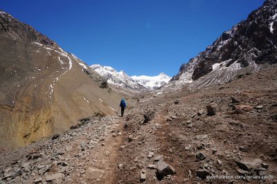 Terceira parte do Trekking no Parque Nacional do Aconcágua, saindo do acampamento de Confluencia até Plaza de Mulas a 4.300 m de altitude.