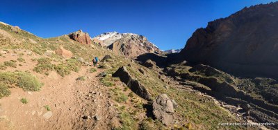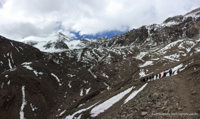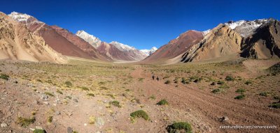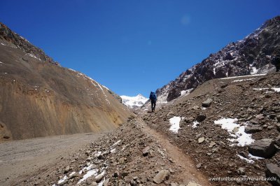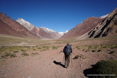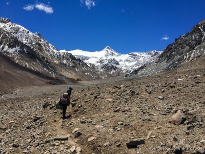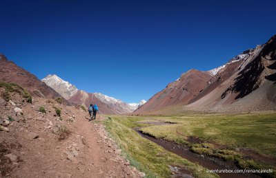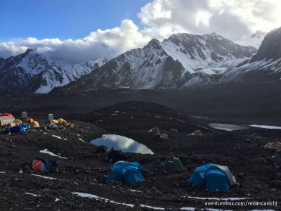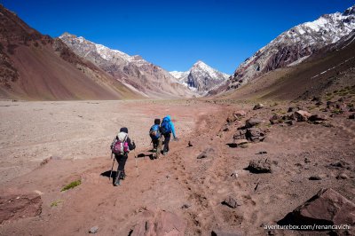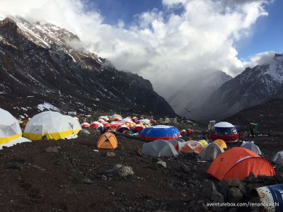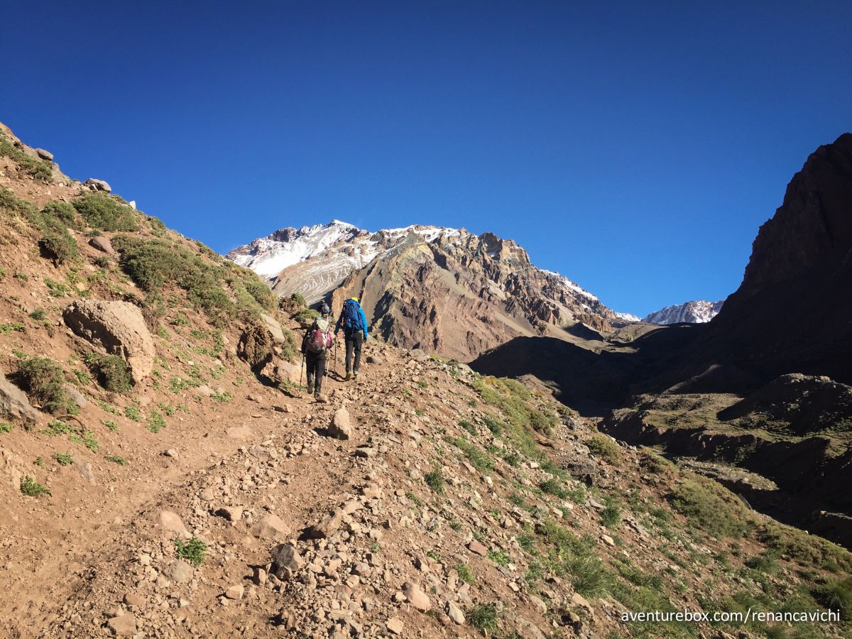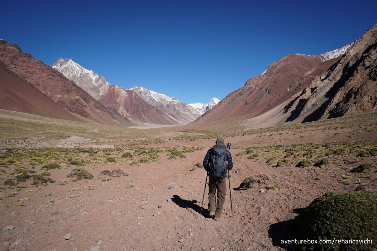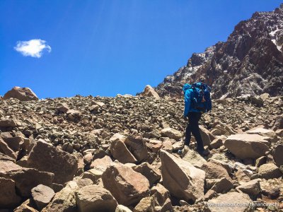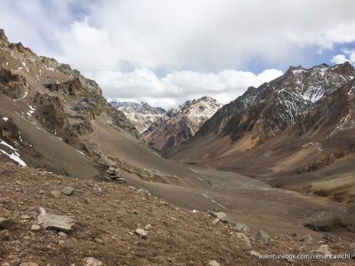 Terceira parte do Trekking no Parque Nacional do Aconcágua, saindo do acampamento de Confluencia até Plaza de Mulas a 4.300 m de altitude.