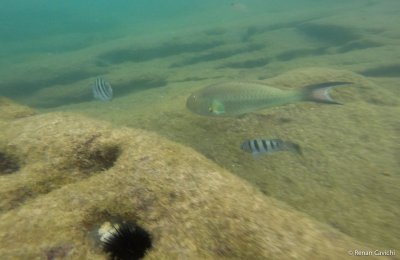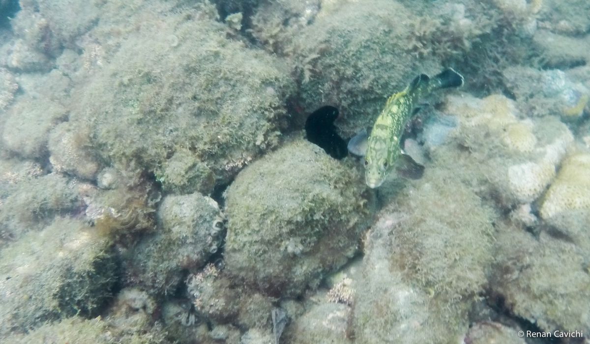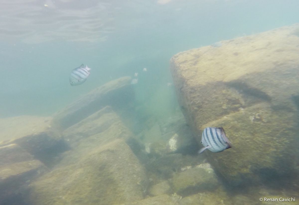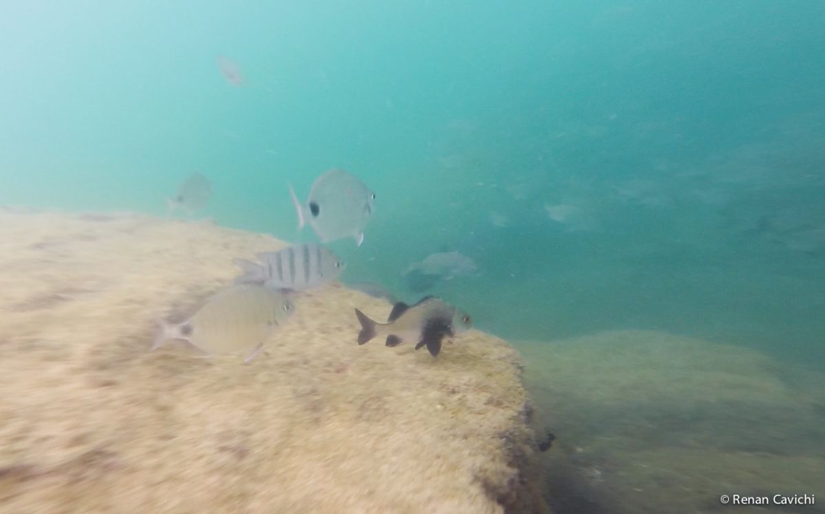 Registro fotográfico do mergulho de snorkel no Litoral Norte de São Paulo. Acesso fácil, 2.2km da balsa em Ilhabela, sentido sul.