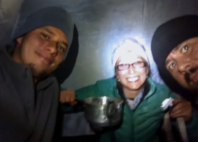 Foi o tempo de chegar e armar a barraca com muito vento frio. Mas o que não poderia piorar, PIOROU MUITO! rsrs. Essa noite foi feia, ninguém dormiu, o vento ficou tão forte que chegava a entortar as varetas das barracas com as rajadas, começou a chover e com a intensidade do vento a capa não suportava e deixava respingar dentro da barraca. Tivemos que improvisar um jantar com muito cuidado e passar a noite segurando as laterais da barraca. Foi TENSO!