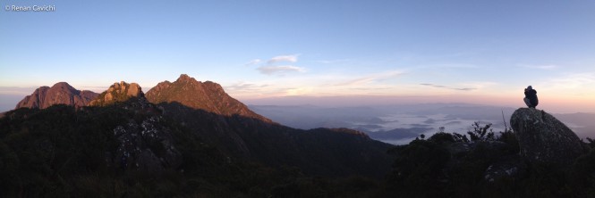 No dia seguinte fomos presentiados com o tempo aberto e uma vista linda do amanhecer no Sul de Minas e do Pico dos Marins e Marinzinho. Descobrimos que estávamos cerca de 20 minutos antes da Pedra Redonda.