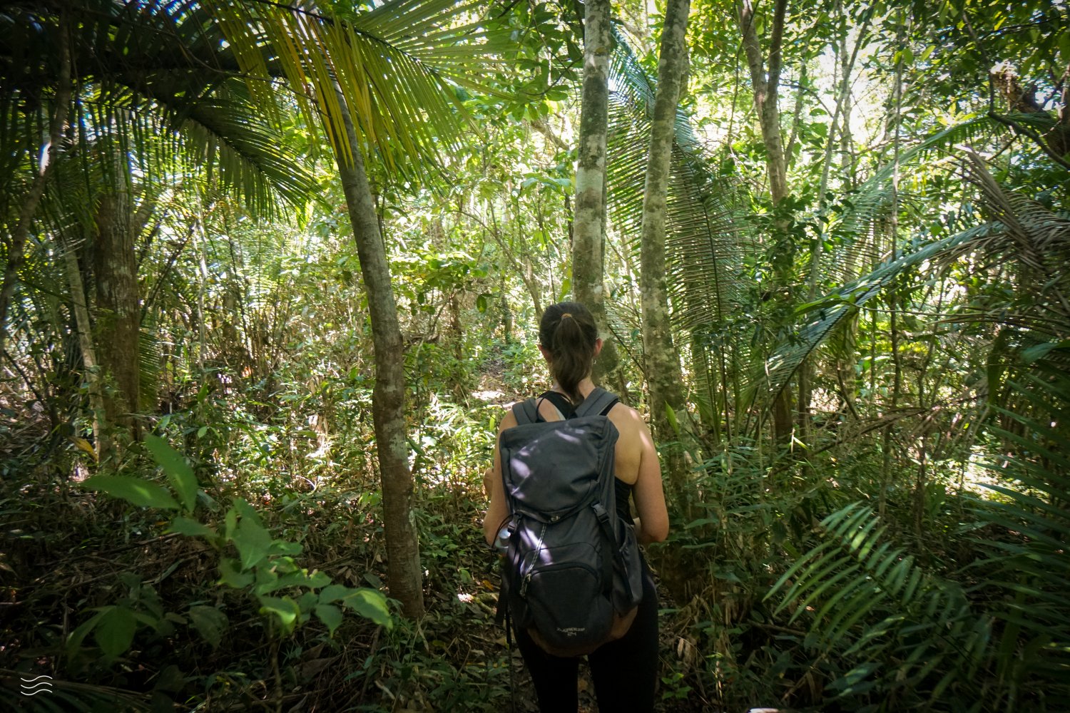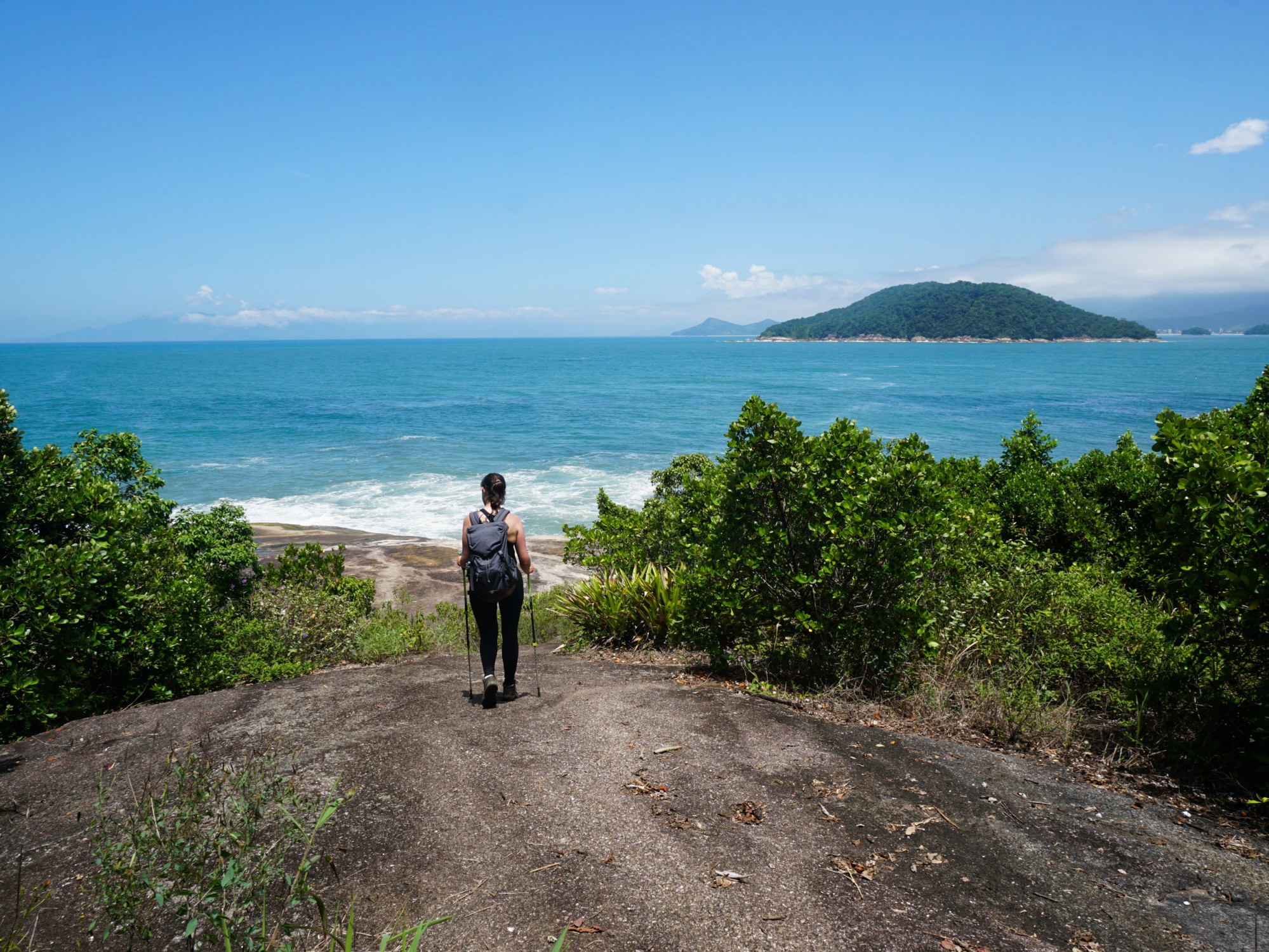 No final da Praia da Figueira adentramos a mata para ter acesso à Praia da Ponta Aguda. Aqui, o início da subida é por meio da mata mais fechada. Porém, ao chegar no topo, a vegetação fica mais baixa e é possível ter um visual lindo da Praia da Figueira e da Ilha do Tamanduá logo à frente.