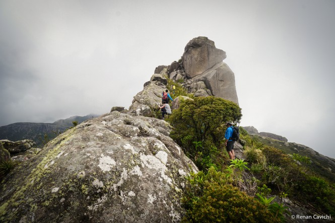 Logo chegamos nas rochas e de lá até o cume encontra-se alguns trechos um pouco mais técnicos com o clássico "trepa pedra", nada muito intimidador mas que exige bastante atenção com regiões um pouco mais expostas.