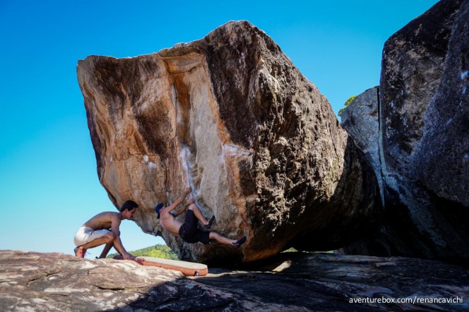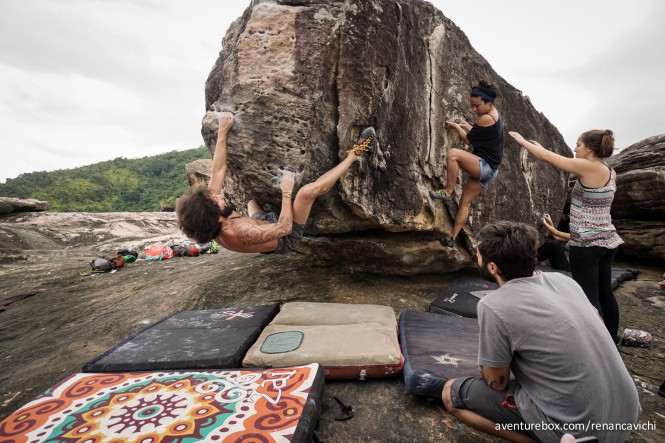 Eu sou iniciante no esporte e comecei a praticar o Boulder logo depois do Curso de Escalada em Rocha com Eliseu Frechou, ainda em ambientes indoor como no BBloc em São Bento do Sapucaí e no Equilibrium em São José dos Campos. Uma das coisas que mais me atrai no Boulder é o contato com a natureza, facilidade de equipamentos, a dificuldade técnica que exige muito treino e principalmente o companheirismo da galera, rapidamente você vai perceber que todos torcem pela evolução dos parceiros e estão dipostos a ajudar na segurança.