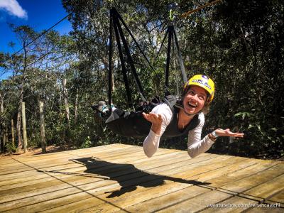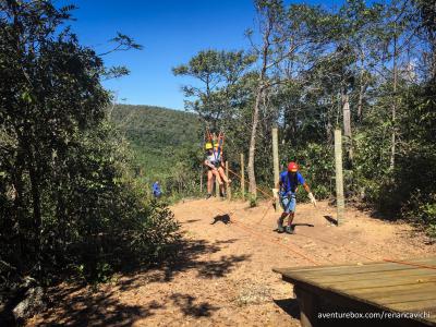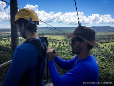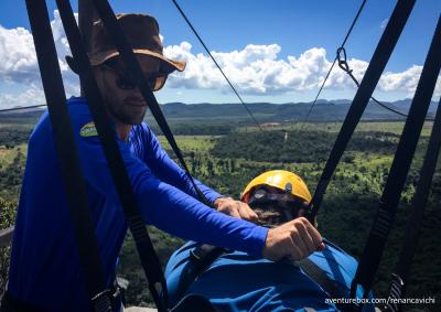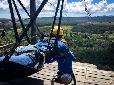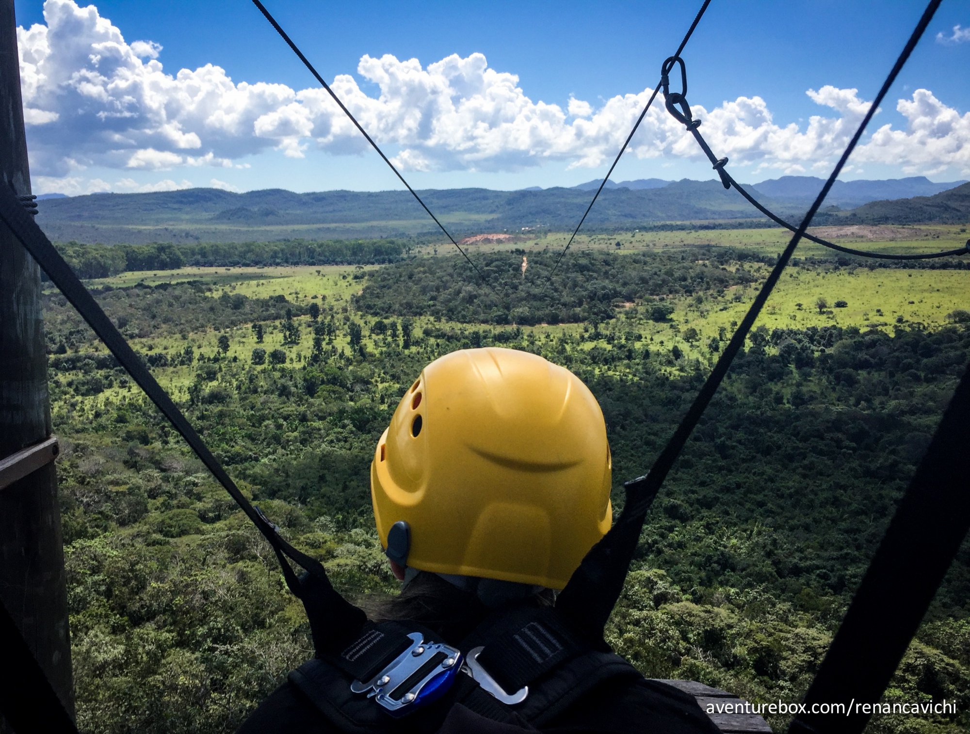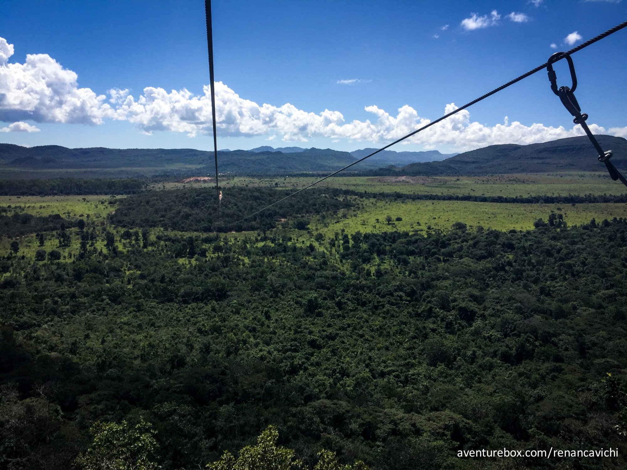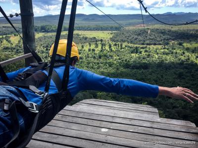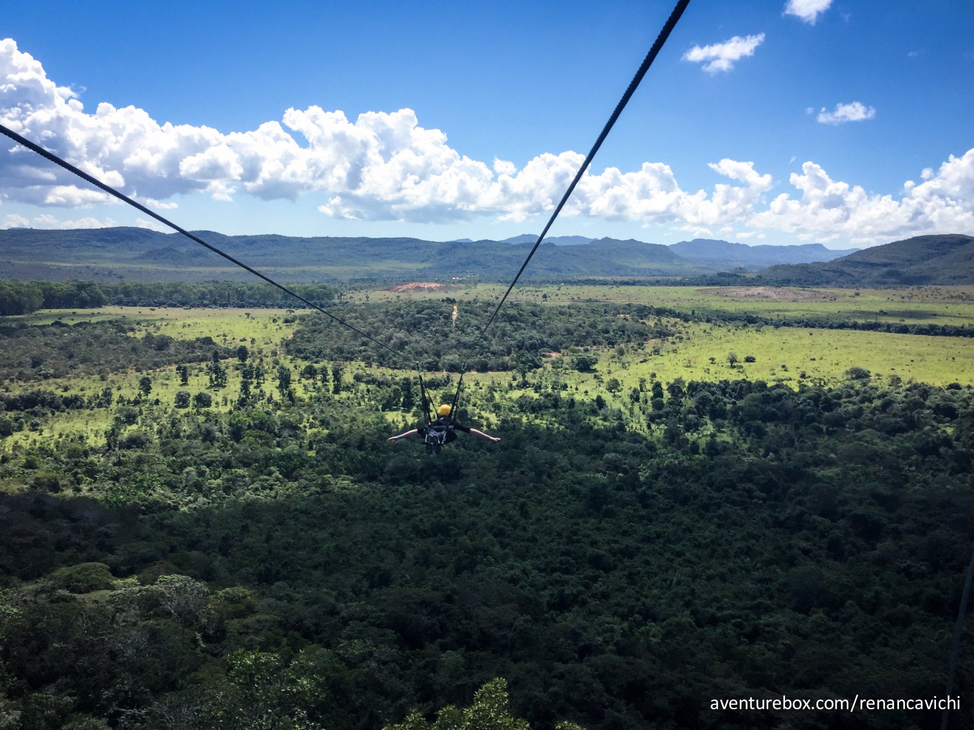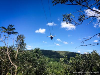 Experiência na Tirolesa de 850 m de extensão e 100 m de altura próximo a Alto Paraíso de Goiás na Fazenda São Bento - Travessia Ecoturismo.