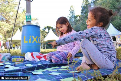 Atividades com as crianças no Mountain Festival, realizadas pelo Projeto Pequeno Sustentável.