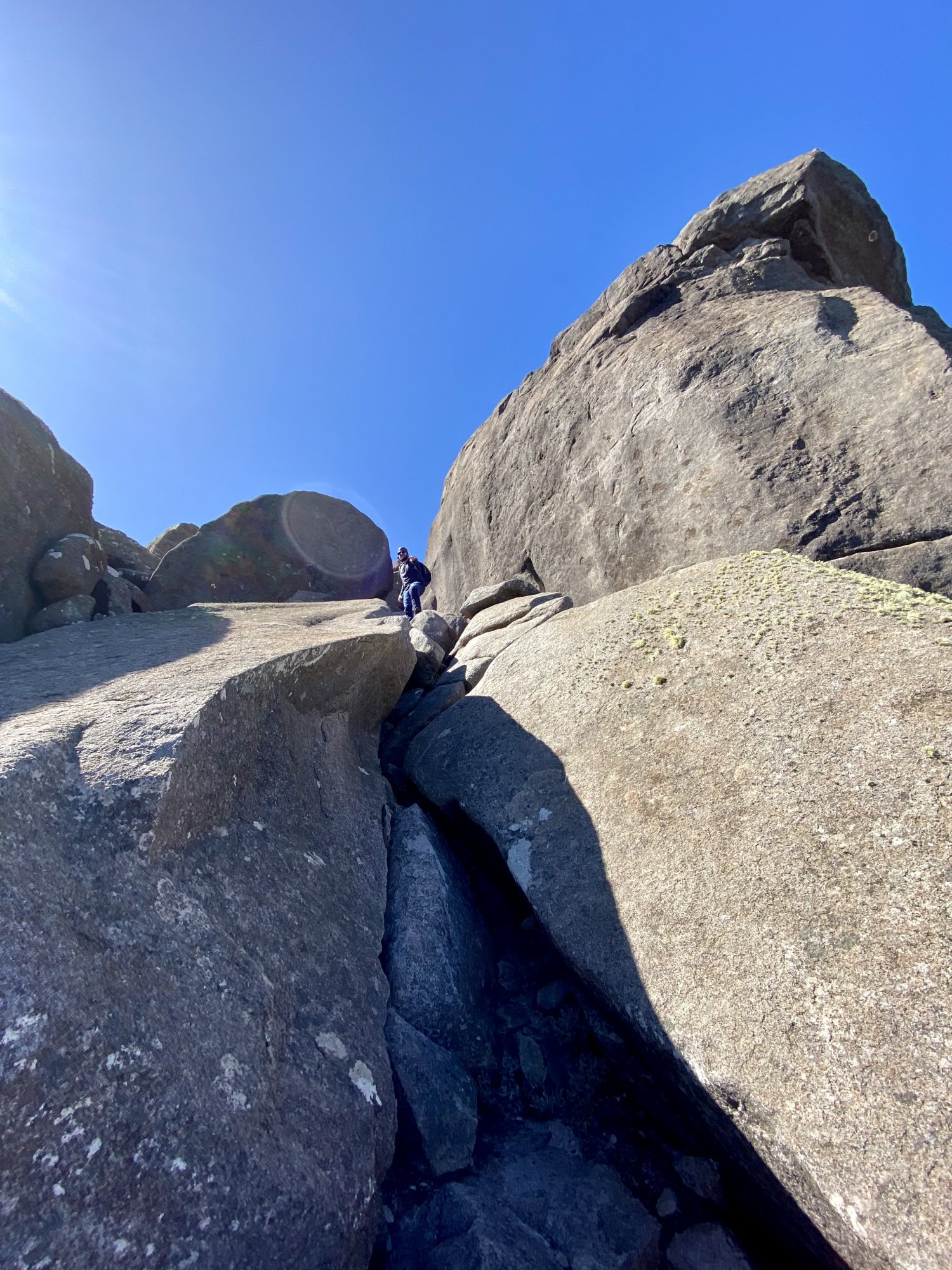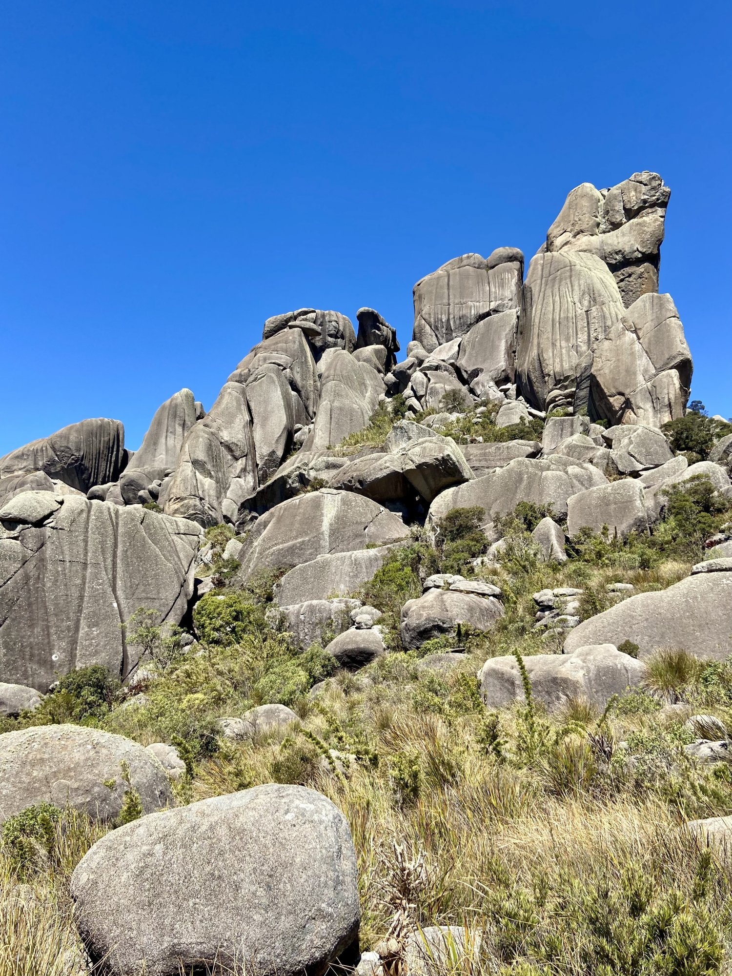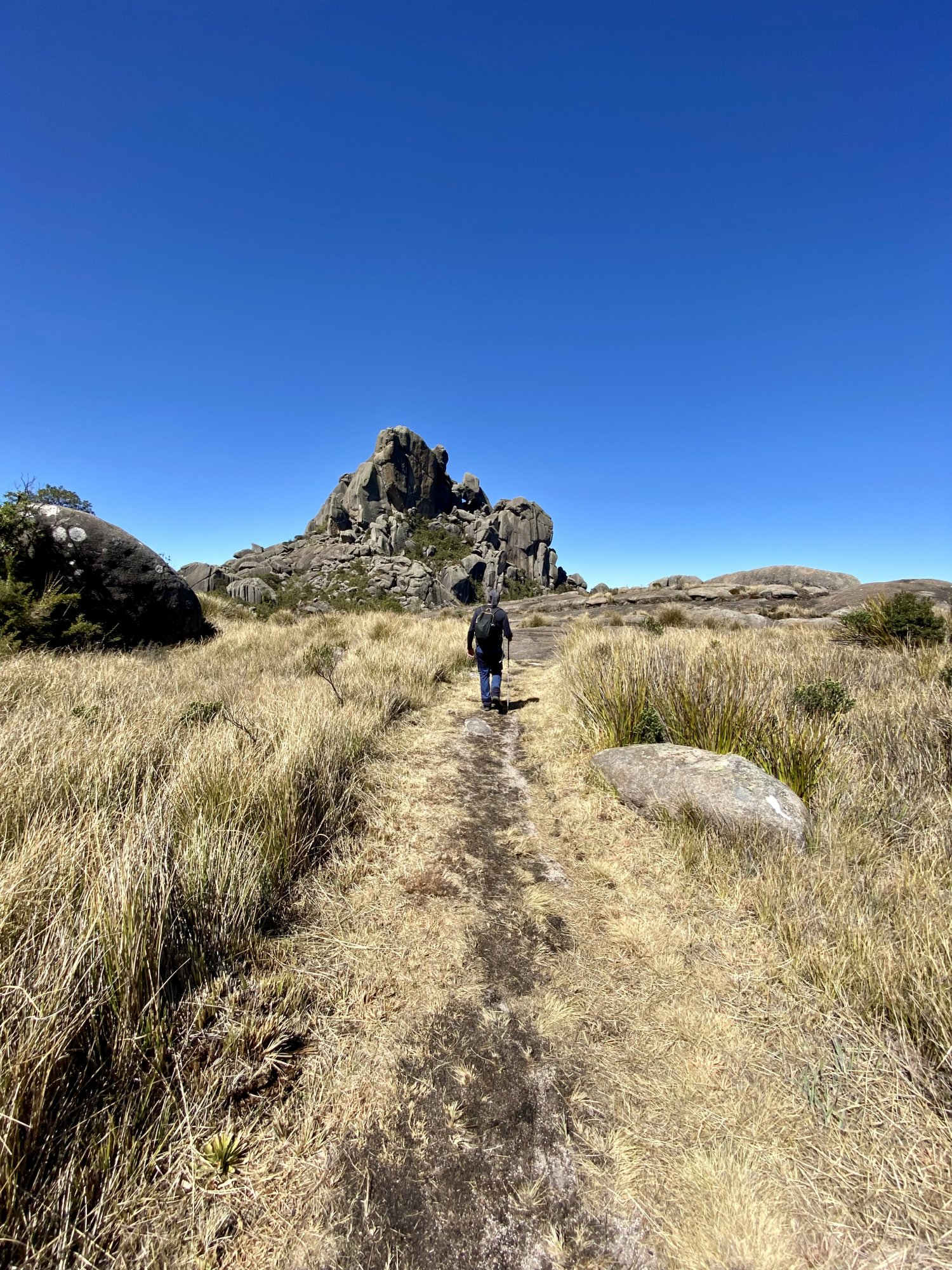 Mas é com Prateleiras que faz o diálogo mais firme, separados por uma das travessias mais bonitas desse Brasil. A caminhada rumo à Prateleiras vai pela crista da montanha. Entre esses gigantes não existe a oportunidade de ficar entediado mesmo em uma trilha com poucos desníveis. Nos 12,5 km de travessia existe uma chance de desistir logo após o Couto (você não vai querer fazer isso), passamos por mirantes incríveis, em que um deles, em particular, vai encher os olhos para quem, como eu, é fã do Agulhas Negras (você vai reconhecê-lo se sair um pouco da trilha principal). E por fim, chegar à Toca do Índio, uma gruta enorme que oferece um dos poucos - se não o único - ponto de sombra nessa travessia, que certamente você vai precisar se pegar um dia com sol escaldando na cabeça