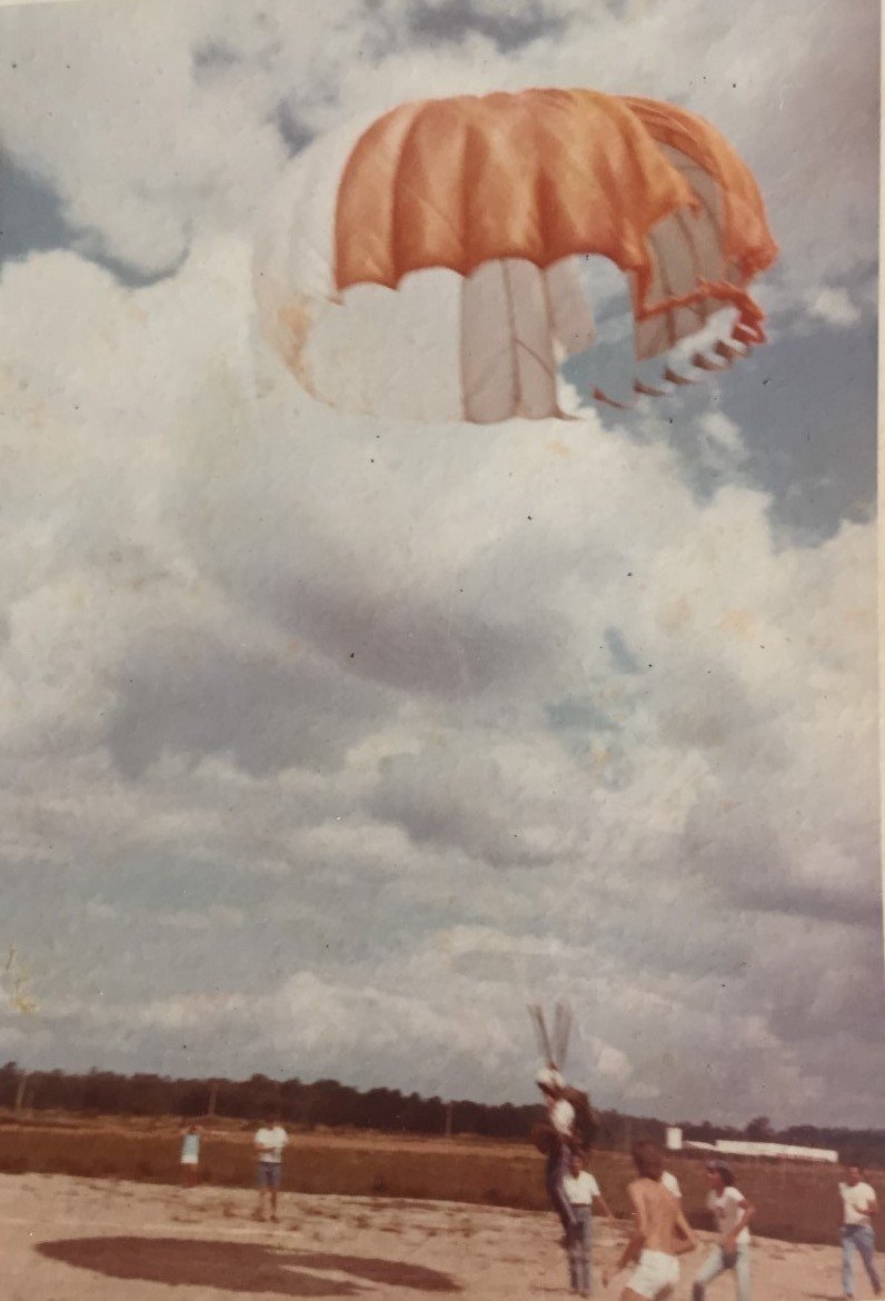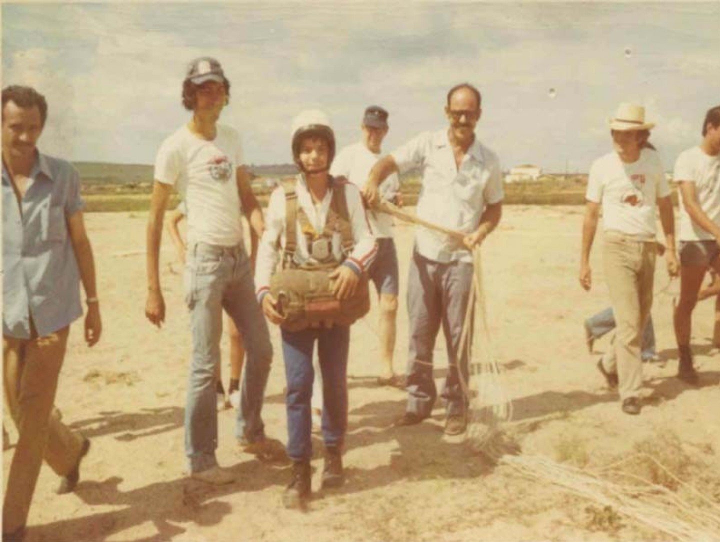 Era um domingo, dia 12 de dezembro, um lindo dia de sol e ventos calmos. Eu estava lá pendurado sob um velame redondo de cor branca, laranja e marrom. O silêncio era total. Diferente dos aerofólios de hoje que tremulam e fazem barulho. A 2.000 pés eu podia avistar nitidamente o alvo onde pousaria e o meu instrutor Miro no centro dele. Eu tive um pensamento de vitória: consegui, agora não dá mais pra voltar para o avião, portanto esse salto já é meu.