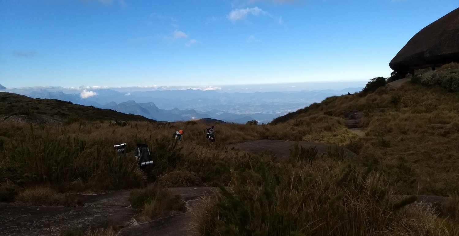 Mas a recompensa veio logo em seguida. Mortos pelo cansaço, chegamos no Chapadão. Lugar extraordinariamente lindo. Com o horizonte sem neblina e nuvens, foi possível ver toda baixada fluminense, com a capital do rio ao fundo, além de toda serra que envolve Petrópolis. Tiramos altas fotos e a beleza era tanta que acabamos perdendo a hora e percebemos que ficamos muito tempo lá.