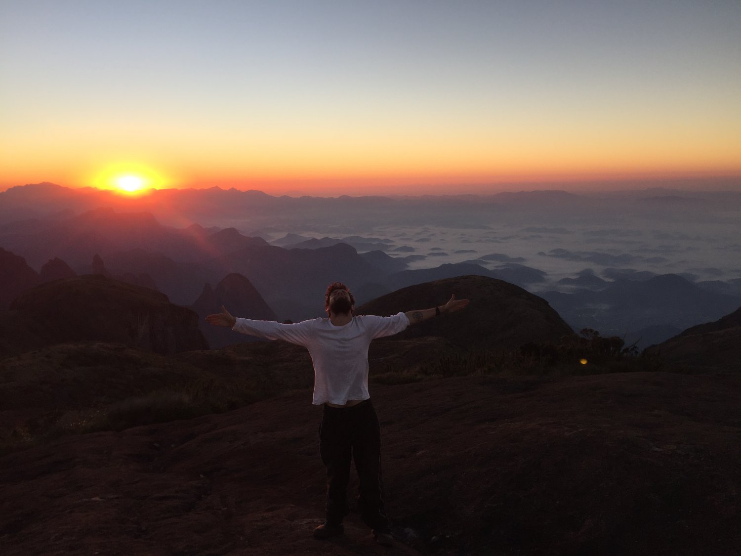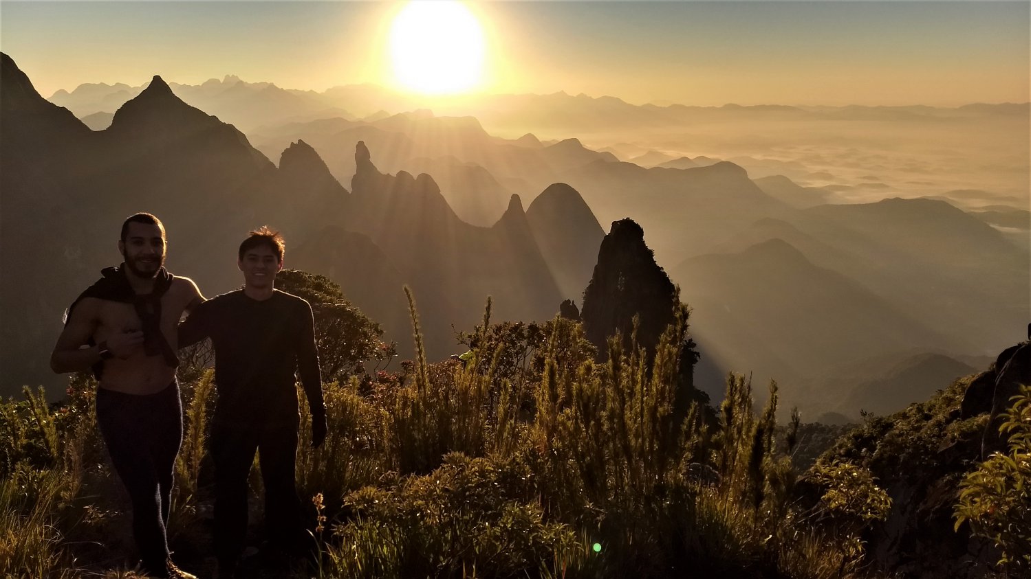 Montamos nosso acampamento perto dos Castelos do Açu e fomos para o Pico do Cruzeiro assistir o pôr-do-sol e ver esse puta sorrisão.