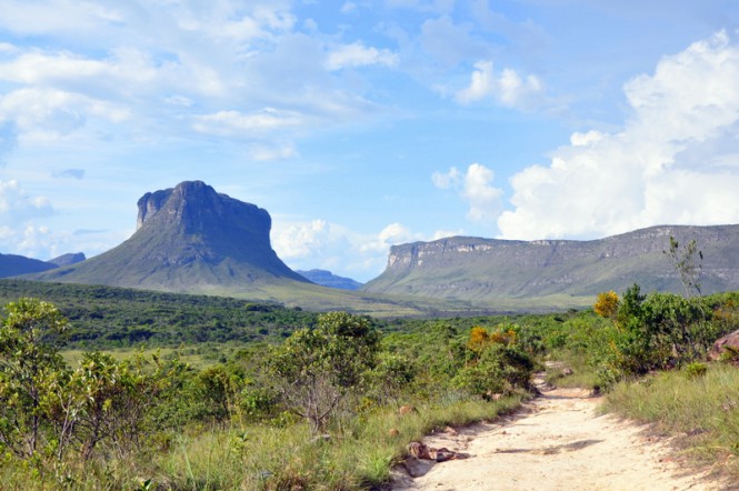 Iniciamos a travessia partindo da pousada a pé às 8h30min. Fomos em direção ao hotel Portal de Lençóis, a trilha parte de lá. A única informação que tinha era um tracklog de uma trilha de bike que partia de um bairro mais distante, o Barro Branco. Eu me baseei na direção deste track de bike para conseguir me orientar na trilha a pé. No começo da trilha ganhamos altitude e vamos deixando Lençóis para trás. Após uns 5 km andando a trilha nítida vira um lajedo e é onde tenho certa dificuldade para encontrá-la após a cachoeirinha, mas nada que uma “palmilhada” na trilha não resolva para encontrá-la. Adentramos na Serra de Sobradinho, paisagem linda, aqui andamos cercados pelos chapadões, cruzamos rios e riachos e ao norte temos o Monte Tambor ou Morrão como referência de nossa pernada. Após horas de caminhada e quase nos aproximando ao Morrão, intercepto a trilha de bike do meu track e sem mais erros sigo direção à Capão e chego ao destino quase anoitecendo após 25 km e quase 7hrs de caminhada. Lá nos hospedamos na Pousada Pé No Mato (R$95/casal, tudo excelente neste pousada).