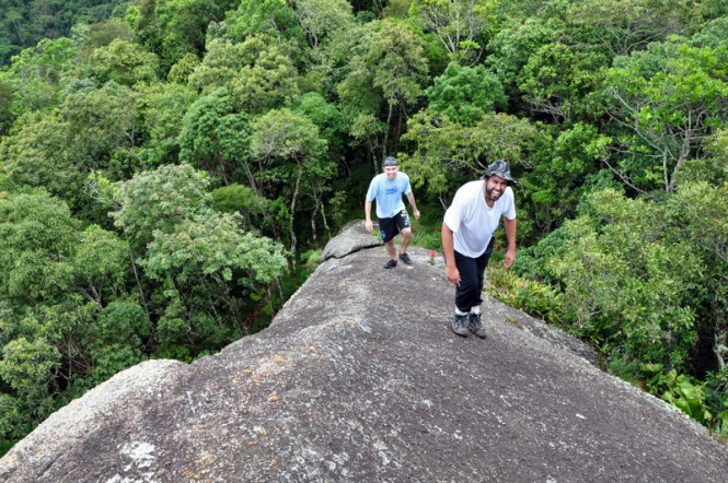 Assim que começamos avistar a pedra, a subida torna-se mais pesada e em muitos trechos temos que nos agarrar em galhos e raízes para conseguirmos subir. Vamos ganhando altitude aos poucos, contornado a pedra para enfim atacar seu cume por trás, através de um estreito filo que nos leva diretamente a crista da montanha.