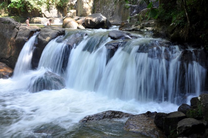 Já passavam das duas da tarde quando enfim chegamos ao centrinho da cidade e fomos para o restaurante Recanto Mineiro. Excelente comida e preço bem em conta. Após o almoço fomos para a Cachoeira Pedro David. Próxima ao centro, a cachoeira possui várias quedas e bons poços para banho, porém em final de semana, por ser uma cachoeira pública e próxima, ela pode estar lotada como o próprio Ronald testemunhou.