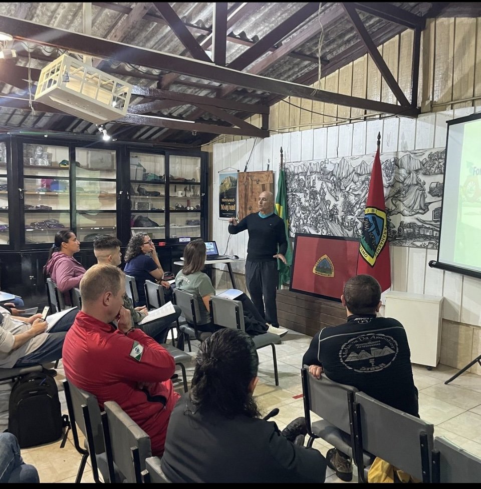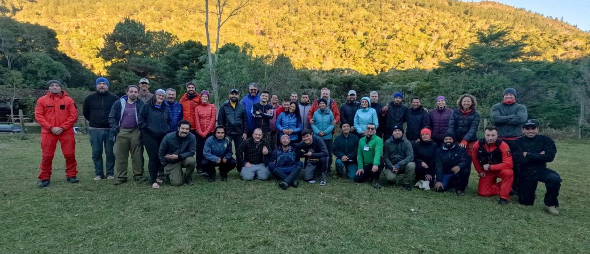 São muitos os casos de maior complexidade que demandaram recursos especializados que se estenderam por dias ou semanas. A simples lógica, traduzida pelas pirâmides de Heinrich, de Bird e assemelhadas torna evidente o quanto essa “ponta do iceberg” esconde de eventos de menor gravidade. E, à exemplo do que se prática na área de segurança, sinaliza o caminho para minimizarmos as dores de pais, mães, filhos e amigos. Agir na prevenção, adequar o comportamento inseguro, interromper a cadeia de eventos que conduz às fatalidades. O artigo da trilheira Karine Variane Angelini, “Pessoas perdidas e desaparecidas em montanhas do Brasil: o que podemos aprender com isso” trata dos diversos fatores que contribuem para a ocorrência do “perder-se”. Merece ser lido e relido PÚBLICA atentamente. Aprender com os eventos pregressos e com o erro alheio é menos sofrido que o fazer com a própria pele. Sugiro aproveitarmos da capacidade cognitiva que nos destaca dos outros animais e tratarmos de contingenciar, no possível, nosso risco. Esse artigo, trata de uma iniciativa nesse sentido, de compreender um pouco melhor o como evitar tornar-se um buscado. E, sendo, como portar-se da forma mais contributiva possível, para o bom desenlace do evento. Nosso instrutor foi nada menos que lendário: Máfia, patrimônio do montanhismo Paranaense e do CPM, um dos fundadores do Corpo de Socorro em Montanha (COSMO), com extensa experiência em buscas e montanhismo aqui no Brasil e no exterior, em alta-montanha. Para escudá-lo nessa nobre tarefa, contou com o apoio de uma extensa rede de abnegados voluntários que cederam tempo, capacidade e esforços nos bastidores. Gostaria de agradecer à cada um nominalmente, mas por absoluta falta da minha parte voluntário/a. Citarei poucos nominalmente, por absoluta falta da minha parte: Luisa Mazarotto, coordenadora das equipes de monitores, Júlio Cesar Ferreira do Nascimento (Manuel Lost), nosso teimoso perdido, Marcelo Chrispin (infraestrutura de rádio), à família da vítima,Celso, Giulia e Rebecca/Débora e (Pai, mãe e prima, respectivamente) que suportaram dezenas de chamadas no afã de obtermos mais informações e ao próprio CPM, na figura de sua presidente, Sintia Rekdal. Numa conta de padaria, arrisco dizer que para 20 alunos, tivemos a participação de cerca de 40 voluntários, em momentos diversos. Apenas a preocupação e o carinho com o irmão montanhista explicam a dedicação de tantos. Se alguma dúvida da qualidade do treinamento, o elevado nível técnico do corpo discente, desde a primeira hora afiançou a seriedade da proposta. Dos colegas de turma, quase metade trabalha na área de segurança pública, voltados às buscas em matas e a prestação de apoio em catástrofes. Do Grupo Operações e Socorro Tático (GOST), tínhamos o Capitão Maurício Dubas e o soldado Eber Leite. Do 8ºGrupamentos de Bombeiros do Paraná, responsável pela área de Morretes (8ºGB) os cabos Guilherme Valenga e Anderson Ferreira. Do Batalhão da Polícia Militar Operações Aéreas (BPMOA), o sargento Maxi Tabosa e soldado Aristeu Zavatti. Do Batalhão de Operações Policiais Especiais (BOPE), o cabo Alex Sandro. Outra parte, formada majoritariamente por montanhistas experientes, Frederico (Dico) e Juliana Virmond, médicos de Guarapuava; André dos Santos, de Porto Alegre; Edson Chaparro, engenheiro florestal; Gabriel Vezzani, arqueólogo, socorrista e bombeiro civil; Gabriel Cieslak, corredor de montanha; Felipe dos Santos, montanhista e radioamador. Marco Forte, montanhista desde 91há algumas décadas, retomando às atividades com maior frequência. Seja bem-vindo de volta. Dispúnhamos também de uma dupla de brunos: Barretos e Banhuk. O PÚBLICA time do gênero mais forte ainda dispunha da Lorena Farias, da Amanda Castro (médica) da Tatiana Guerra (piloto privado). Quero destacar um colega iniciando no montanhismo pelo melhor caminho, pela capacitação. Jalton de Souza, parabéns pela iniciativa e que seja de grande alegria tua trajetória na suada e alegradora mania de subir montanhas, sabe-se lá o porquê.