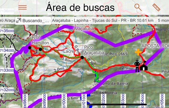 Apesar de ter saído de SP com a intenção primeira de aprender algo sobre rastreio em campo e ter predileção por trabalho de campo, acabei por entender que me faria mais útil à equipe se ficasse na base, como escriba ou na parte de mapeamento. Difícil cotejar atividades tão dispares quanto essas “de inteligência” com o trabalho de campo, de rastreio, de cunho realmente “físico/prático”. São complementares e a harmonia entre ambas se mostra crucial para o bom desenvolvimento das buscas. Aqui, cabe um parêntese: que por bom desempenho não se entenda, apenas, o encontrar do buscado, sob qualquer condição. A atividade de buscas, desempenhada de forma “ótima” pode não encontrar o perdido, por inúmeras razões, discutidas durante as aulas teóricas e vivenciadas no simulado. Uma busca que otimize o emprego dos recursos disponíveis e que resulte na máxima probabilidade de encontrar o perdido, sem produzir novas vítimas é uma busca exitosa. Foi alegrador ver meus colegas de aprendizado abrirem mão do que “mais gostariam” de fazer, em preferência a atividades em que se sentiam mais capazes de contribuir. Nosso coordenador ponderou com a equipe, por diversas vezes, que não nos descuidássemos do aspecto didático da atividade. Concluímos ser proveitoso dispor de redundância em algumas atividades, de forma que fiquei na função de escriba, em dupla com o Anderson. Dispúnhamos também PÚBLICA de redundância na função de entrevistador, com os colegas Zavatti e Marco Fortes. As demais funções foram populadas pelos colegas: coordenador das equipes de rastreio, Chaparro; operador de rádio: Felipe; apoio de cartografia, André e logística Tatiana Guerra. Previsão de tempo bastante desencorajadora, não impediu que muitos se irmanassem na composição das equipes de rastreio que fariam o trabalho em campo. Montamos previamente 5 equipes, nomeadas de alpha (Lorena e Barreto), bravo (Dico e Juliana), charlie (Valenga e Amanda), delta (Tabosa e Eber) e ecko (Bruno, Vezzani e Sandro). Determinou-se em cada equipe, quem seria o líder e que ao eventualmente se agregar duas equipes, o comando da equipe resultante seria aquele da equipe precedente previamente informado. Decidimos que contaríamos com um “coelho”, Gabriel Cieslak, que poderia ser agregado a qualquer equipe ou trabalhar de forma independente, no caso da coordenação demandar um deslocamento célere para obtenção de informações ou prestação de primeiros atendimentos à vítima ou a algum componente da equipe de buscas ou de monitoria. Com a “lambuja” de sabermos com certa antecedência da área de buscas para o simulado, procurei estudar os registros de deslocamentos anteriores e elaborar alguns mapas para apoio das operações. Plotei todos os registros, criando assim uma imagem dos caminhos mais (ou menos) frequentados pelos grupos que percorrem aquela área. No sábado, pouco após as 4h, o André me encontrou esperando na recepção do hotel e seguimos para buscar a Lorena. Com o trio completo, tocamos para a base de operações para o simulado, na parte baixa do Araçatuba (Professor Hamilton).