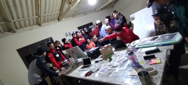 Não descuidando do cunho didático do Simulado, fizemos uma reunião de encerramento das atividades do dia, apresentando à toda equipe as atividades , ações e procedimentos adotados ao longo do primeiro dia, as informações coletadas pelas equipes através de entrevistas e rastreio de campo. Após uma curta discussão, franqueada a palavra a equipe e com um aparte do Máfia, decidiu-se pelo envio das equipes às áreas ainda não verificadas em campo, por serem mais distantes e demandarem maiores recursos. Considerando que o trabalho de maior aproveitamento já se encontrava exaurido, deliberou-se pela redução do estafe na sala de comando, de forma a reforçar as equipes de campo. Algumas funções seriam desguarnecidas, com os PÚBLICA voluntários da sala de comando acumulando atividades. Passamos de um estafe de 9 voluntários para 6. Ao longo das atividades, nos o reduziríamos ainda mais.
