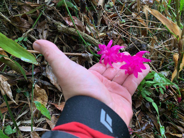Desmontamos acampamento e partimos para a última caminhada dessa travessia, perdendo cerca de 1300 m em 11 km de pernada. Particularmente, foi a parte que menos me agradou, não tínhamos quase que vista nenhuma, nenhum trecho de passagem complexa que exigisse mais habilidade ou técnica. Apenas um “andar sem fim”. Mesmo assim, as flores da descida conseguiram tornar esse trecho alegrador.