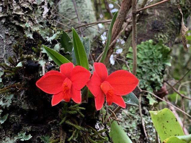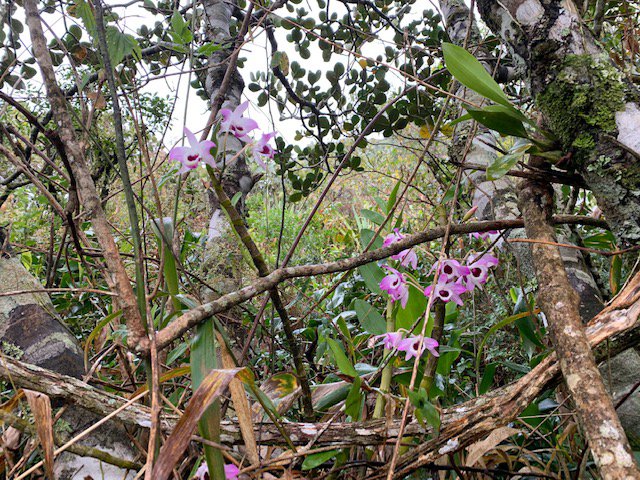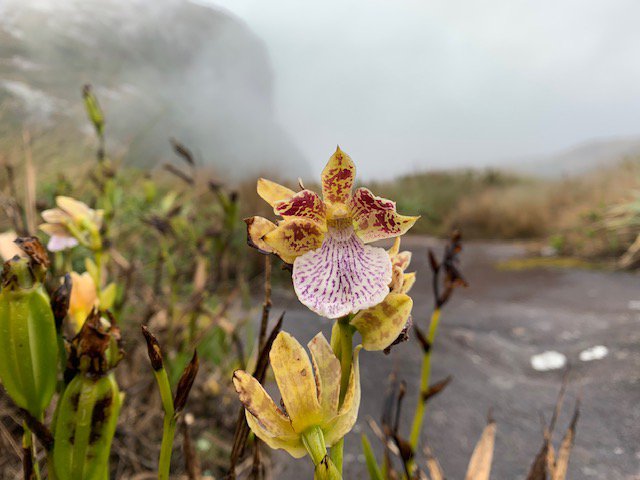 Quase sempre, pois, escapou-lhe uma pequena derivação para esquerda, e, à falta de melhor informação, descemos em direção aos PORTAIS por um atalho, visivelmente pouco batido. Identificado o desvio, optei por seguirmos em frente, tendo sempre em mente que o caminho que buscávamos estava à nossa esquerda, como as vozes do grupo que nos sucedia na montanha bem apontava. Pouco depois, encontramos a trilha que descia para os PORTAIS e passamos a subi-la até a bifurcação. Dali, voltamos a seguir a trilha principal, em direção a primeira subida mais íngreme do dia, nas encostas do MORRO DA LUVA. Antes disso, passamos por uma raiz de árvore carbonizada à esquerda que me fez pensar em como ela teria ido parar ali, já que ao redor não há nenhuma indicação de que já houvera uma floresta naquele trecho, com árvores de maior porte. Em seguida passamos o grupo cujo alarido nos servira de referência quanto à posição da trilha, cruzamos um pequeno curso d’agua e tocamos para cima, primeiro através de um bosque na encosta abrigada onde vi a primeira Sophronite Cernua da trilha e depois pelos tufos de capim e lajes de pedra. Alcançamos o cume do MORRO DA LUA às 10h, tendo percorrido 2,5 km em duas horas de caminhada. Dada a complexidade da navegação e a possibilidade de piora no tempo, eu impunha um ritmo um pouco mais forte e passamos alguns grupos que haviam saído mais cedo, mas que tinham menos pernas que nós, fomos passados por um grupo que havia arriscado a caminhada até os PORTAIS, e que, como havíamos suposto, se frustrara com o nascer do sol. Faz parte.
