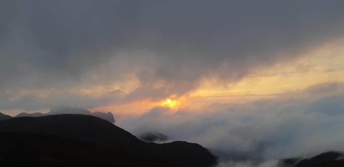 Acordamos com o alvorecer, tendo as nuvens como companheiras próximas. Tratamos de nos juntar aos colegas de montanha que aguardavam o nascer do sol, aboletados sobre uma das maiores rochas dos CASTELOS DO AÇU. Assistimos um nascer tímido do sol, por entre as nuvens e ficamos mais tranquilos por termos evitado o desgaste de caminhar até os PORTAIS e nada ver. Essas fotos espetaculares que vemos, tem muito de aposta de quem as tira. Caminhar, às vezes por horas, guiados pela esperança da imagem perfeita, que muito mais que registrada na fotografia, se firma na alma, na memória.