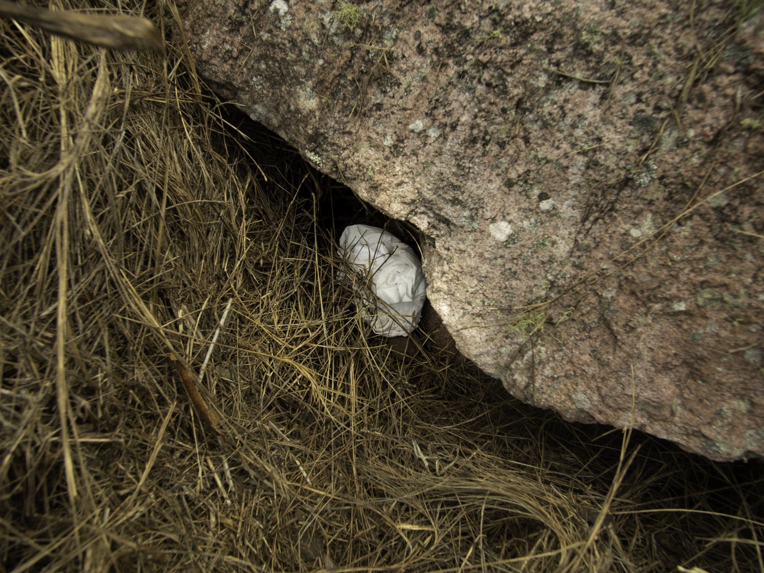 Mais papel Higiênico em local de acampamento, no cume do Pico do Itobira. Esse nem esconderam.