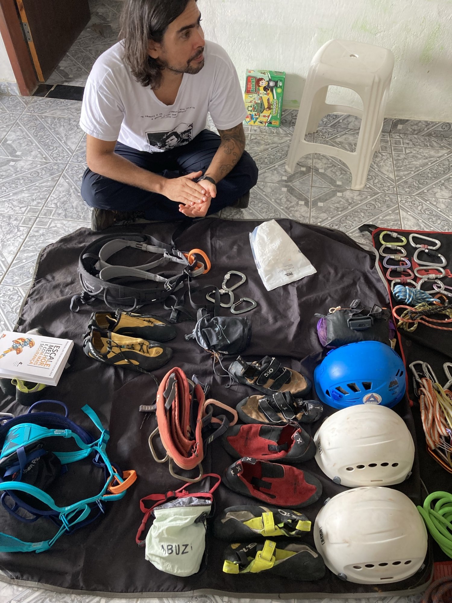 De volta aos tempos (quase) atuais, decidimos aproveitar a oportunidade do feriado do dia 02/11 para fazer o curso básico de escalada com Cauí Vieira, escalador goiano já há muito radicado no Nordeste, apesar de não ter perdido o sotaque. Cauí é instrutor certificado pela AGUIPERJ (Associação de Guias e Profissionais de Escalada do estado do Rio de Janeiro) e foi recomendado por Thiago, Vanessa e Ítalo, do Abrigo Rocaia e por todos com quem conversamos. Liguei para Cauí na terça-feira, dia 28 de outubro, à noite. Ele me disse que tinha disponibilidade e ninguém programado para o feriado. Aproveitamos o flow e caímos de cabeça. E foi a melhor decisão que poderíamos ter tomado. Marcamos com Thiago, do Abrigo Rocaia, a essa altura nossa “casa” em Itatim e esperamos a sexta-feira.