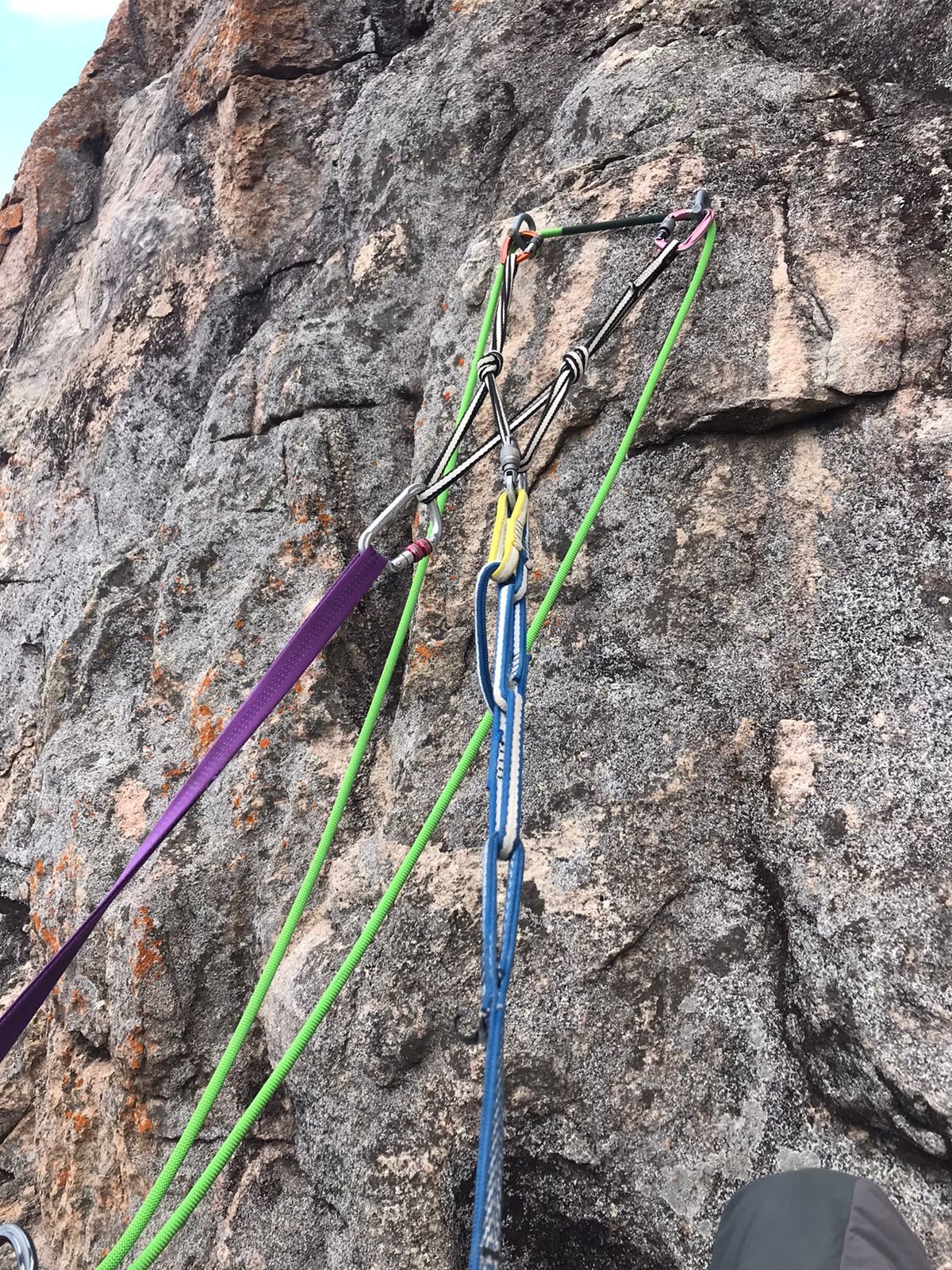 Existe uma trilha para descer caminhando pela face oposta da montanha, que é preferível à exposição de vários rapéis. Mas, para fins de aprendizado, optamos por fazer os vários procedimentos de rapel. Foram 03 longos e desconfortáveis (para mim, pelo menos) rapéis de 30 metros e 02 de 60 metros, com as cordas unidas.