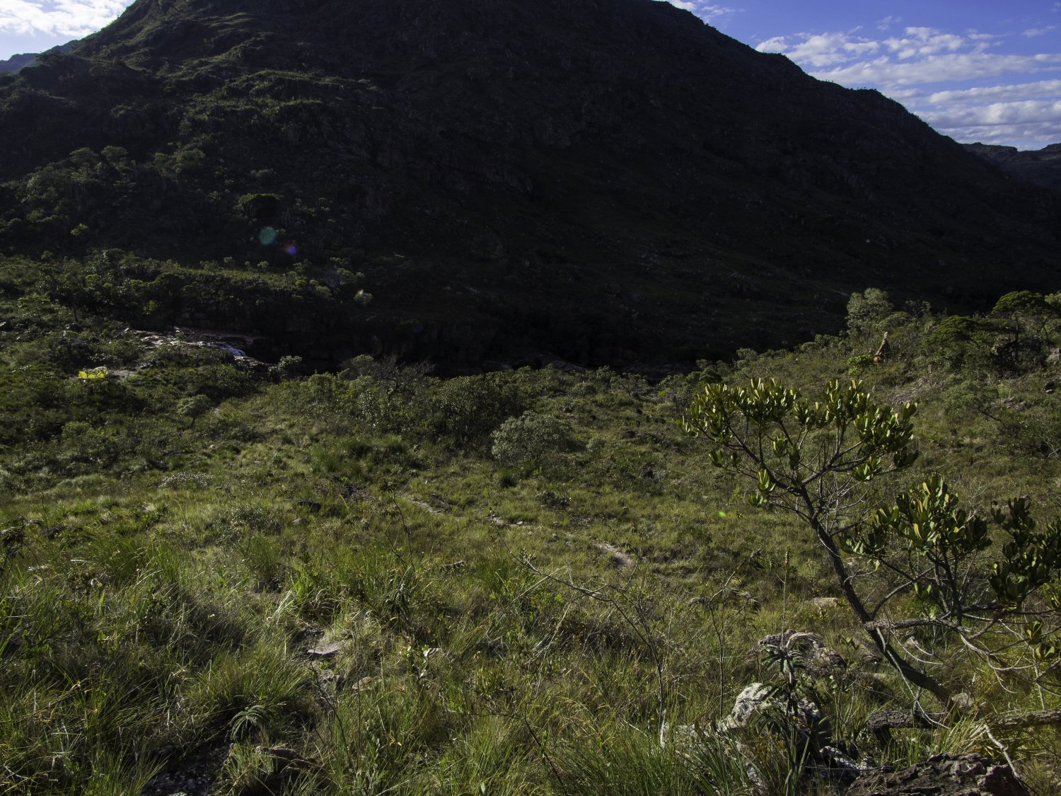 Itobira que, aliás, serve de referência principal em grande parte da caminhada, já que está sempre despontando, com seus 1910 metros, no horizonte. Um trecho muito bonito. Eu gosto muito dessa parte da trilha, dos gerais, da mata e da subida íngreme para chegar aos pés da montanha.