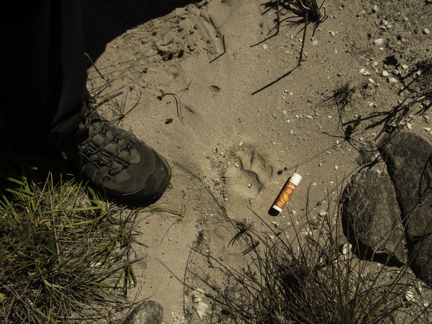O outro dia era o dejair. Arrumamos as coisas já com aquela sensação de criança que vai embora do parque de diversões. Mas, ainda teríamos um dia inteiro de caminhada para atravessar os gerais que separam o Itobira de Bitencourt. Descemos, pegamos água para o caminho e zarpamos. Ainda vimos uma pegada de suçuarana, mostrando que a rainha da área ainda reina pelas Serras Altas.