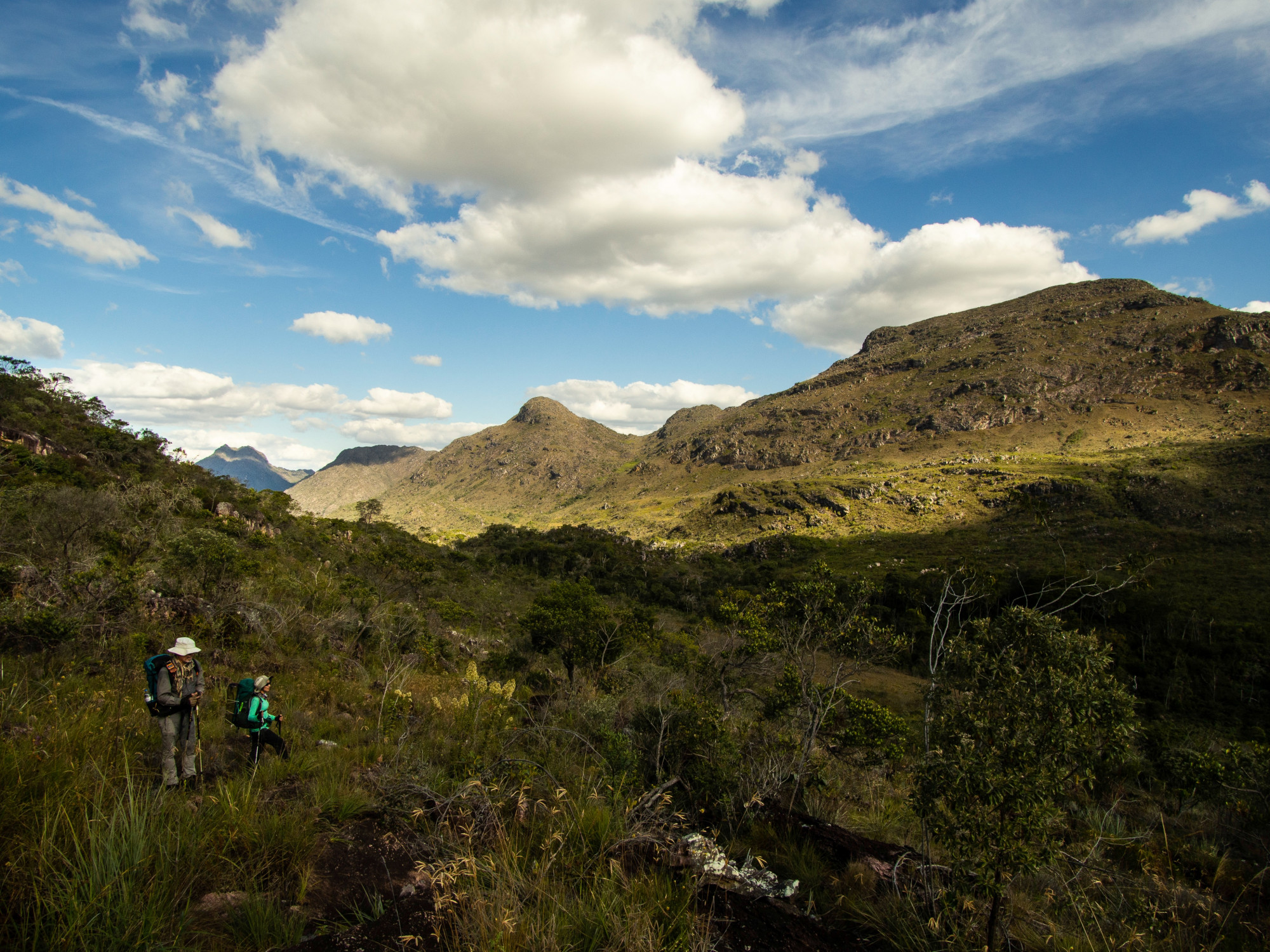 Mais abaixo: Caminhada pela bela Serra dos Cristais.