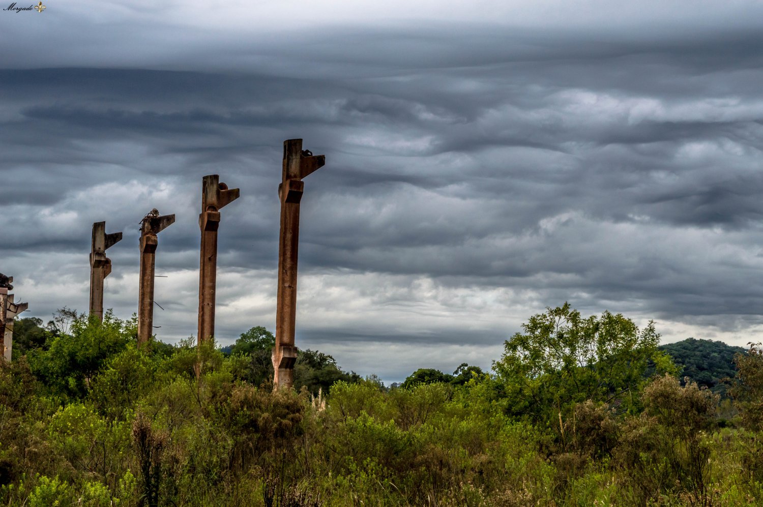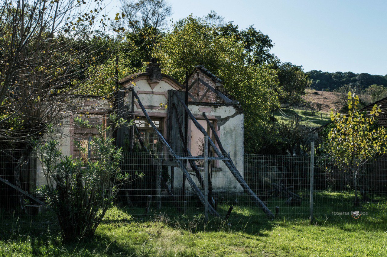 Bom, desta vez nos fomos para a colônia italiana, um local chamado de Colônia Maciel, e na cachoeira que tem neste local. Como de praxe, pegamos o ônibus para Pelotas, depois para a colônia. O tempo estava feio e chuvoso, a Rosana estava com vontade de desistir, mas insisti para proseguirmos, eu já tinha percebido a mudança no vento, e aqui no Rio Grande do Sul é o vento quem manda, mais do que se possa imaginar. A Rosana estava preocupada com o nosso equipamento fotográfico, caso viéssemos a "tomar um molho". Para acalmar a Rosana fomos até o ponto final, um restaurante/museu/bolicho chamado Casa Gruppelli. Já tínhamos estado lá(posso dizer que o pão recheado com salame é fantástico!), por isso resolvemos dar uma volta pelo local. Eu sou um fotógrafo mais urbano, não gosto de fotografar pessoas, mas adoro prédios antigos e abandonados, e também gosto da arte tumular, e o Gruppelli foi um prato cheio!!!